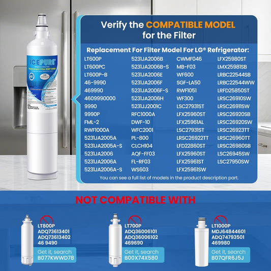 ICEPURE 5231JA2006A Replacement for LG LT600P, KENMORE 9990, 5231JA2006B, KENMORECLEAR 46-9990, 5231JA2006A-S, WFC2001, LSC27931ST, LFX25960ST, FML-2,RWF1000A Refrigerator Water Filter 1PACK