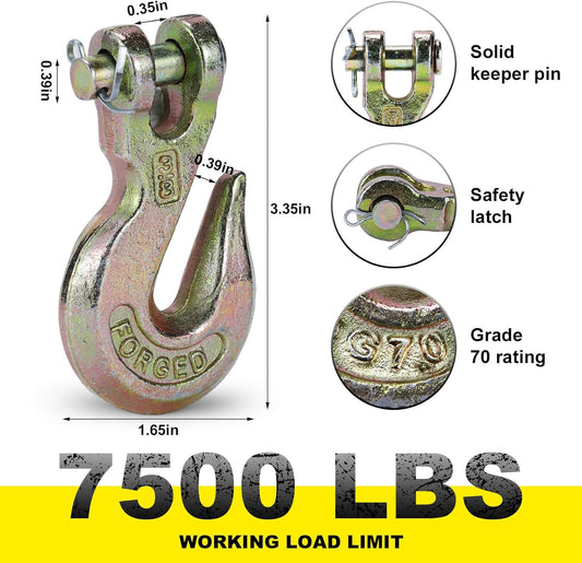 G70 3/8 Chain Hook Heavy Duty Clevis Grab Hook for 3/8 Inch Grade 70 Chain - for Trailer Truck Transport Yellow Chromate Finish (4Pack)