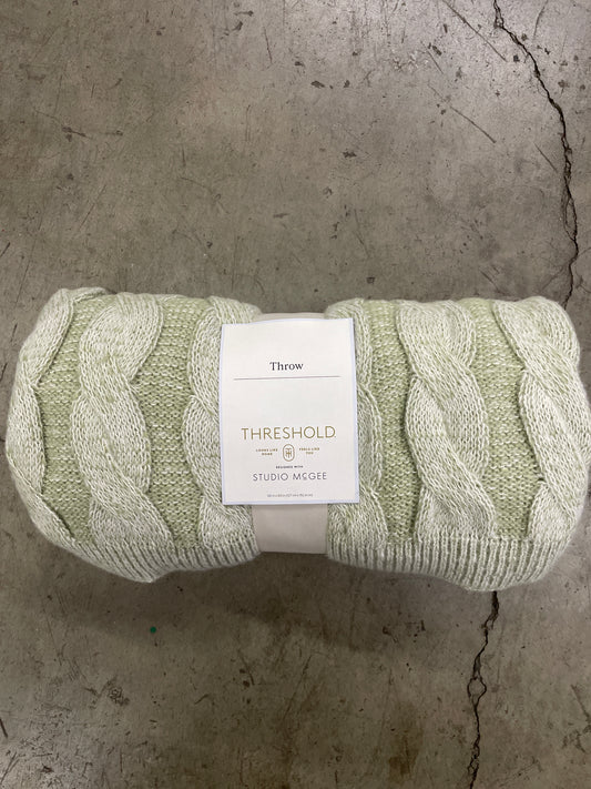 Twisted Cable Throw Blanket Green and Cream 50"x60" - Threshold designed with Studio McGee