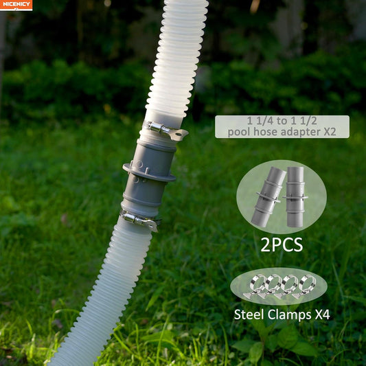 NICENICY Pool Hose Connector, 1.5" or 1.25" Pool Hose Connector Coupling with 4PCS Steel Clamps, Pool Hose Adapter for Swimming Pool Vacuum or Filter Pump Hoses, 2PCS