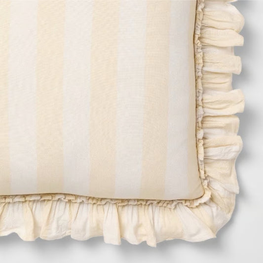 Square Pillow Big Stripe with Ruffle Pale Yellow and Cream - Threshold Design with Studio McGee