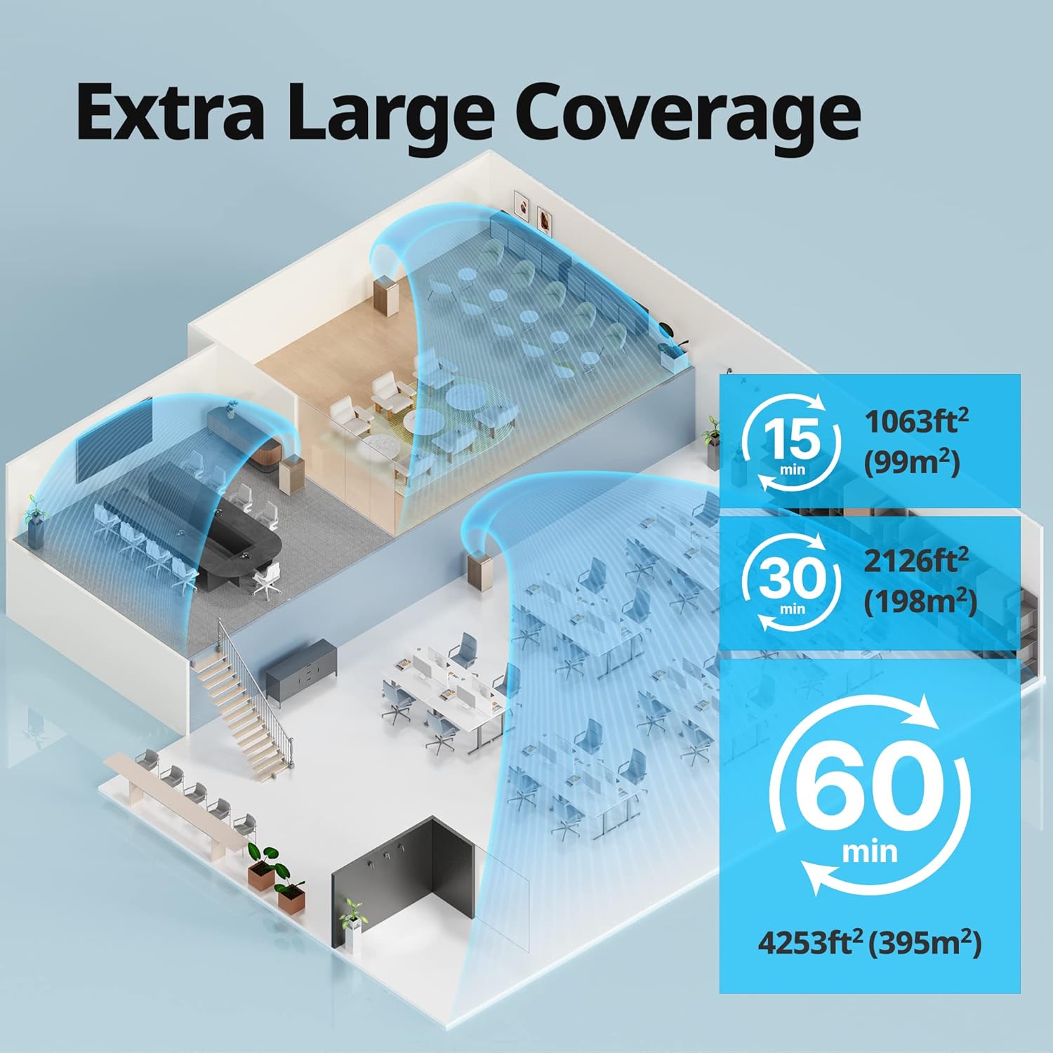 NEW - COWAY Air Purifiers for Large Room Whole Home Up to 4,253ft², 2 Sets of XL Washable Pre-Filters and True HEPA Filters for Dual Purification, PM1.0 AQI, Turbo Mode, Timer, Wheels, 5yr Warranty, ProX(B)