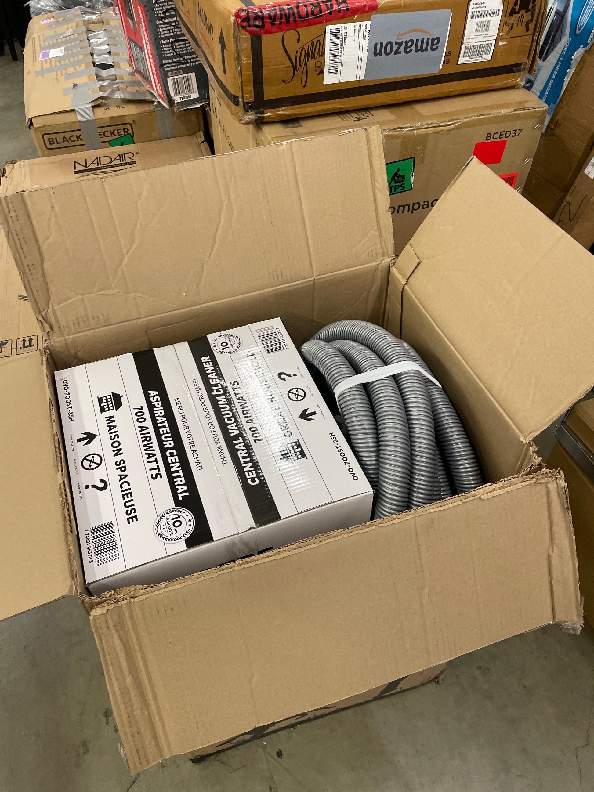 - Powerful 700 AW Central Vacuum with 40 ft High-Voltage hose with electric power head accessory kit included