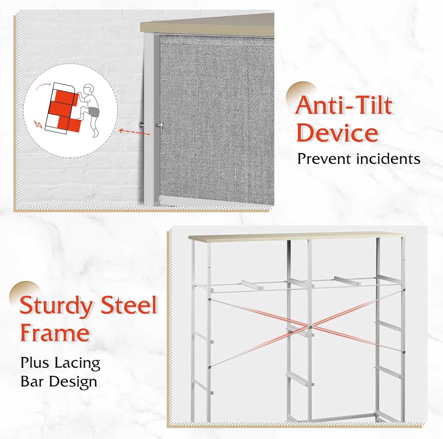 - Sturdy and Durable: The bedroom dresser can also be TV stand for small-size TV; With strong steel frame, water-resistant top and high-grade fabric drawers, the dresser is designed for a long service time.