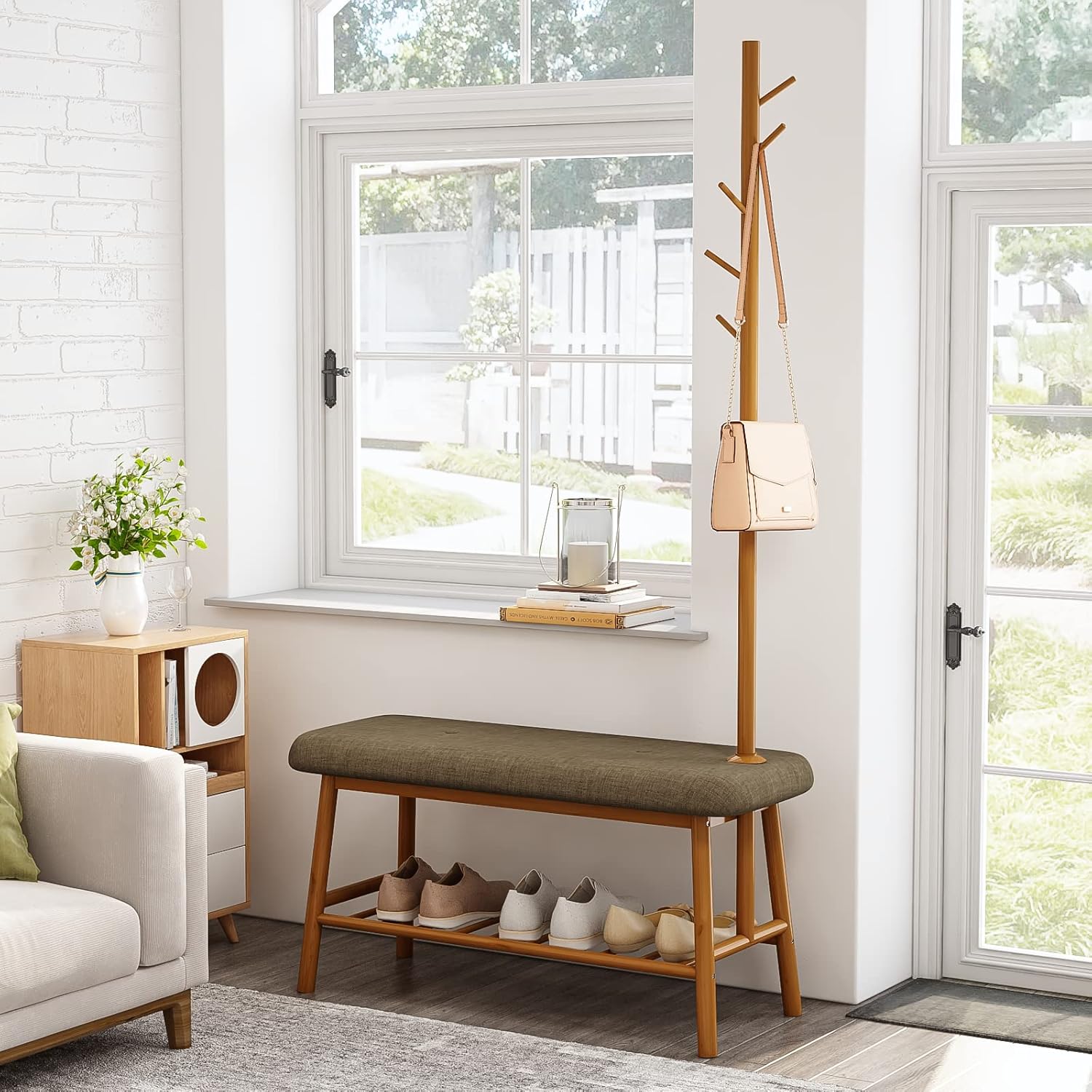 NEW w/ minor dmg - Bamworld Entryway Bench with Coat Rack Shoe Bench for Entryway Bench with Storage Bamboo 3-in-1 Design