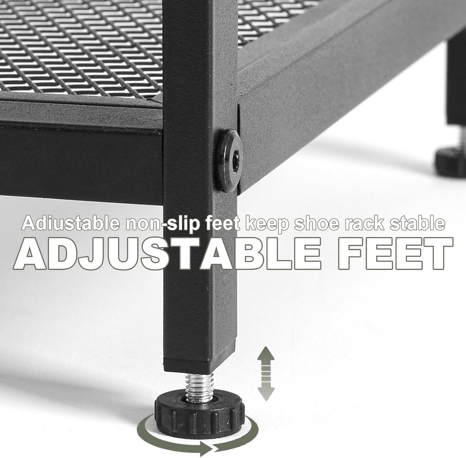 - MODERN & ADJUSTABLE SHOE RACK: Unique adjustable foot design can make the shoe shelf organizer keep balance on uneven floors. Reduce the friction on the floor, better protect your furniture. We hope you feel our warmth on top of the details when you use the shoe rack!