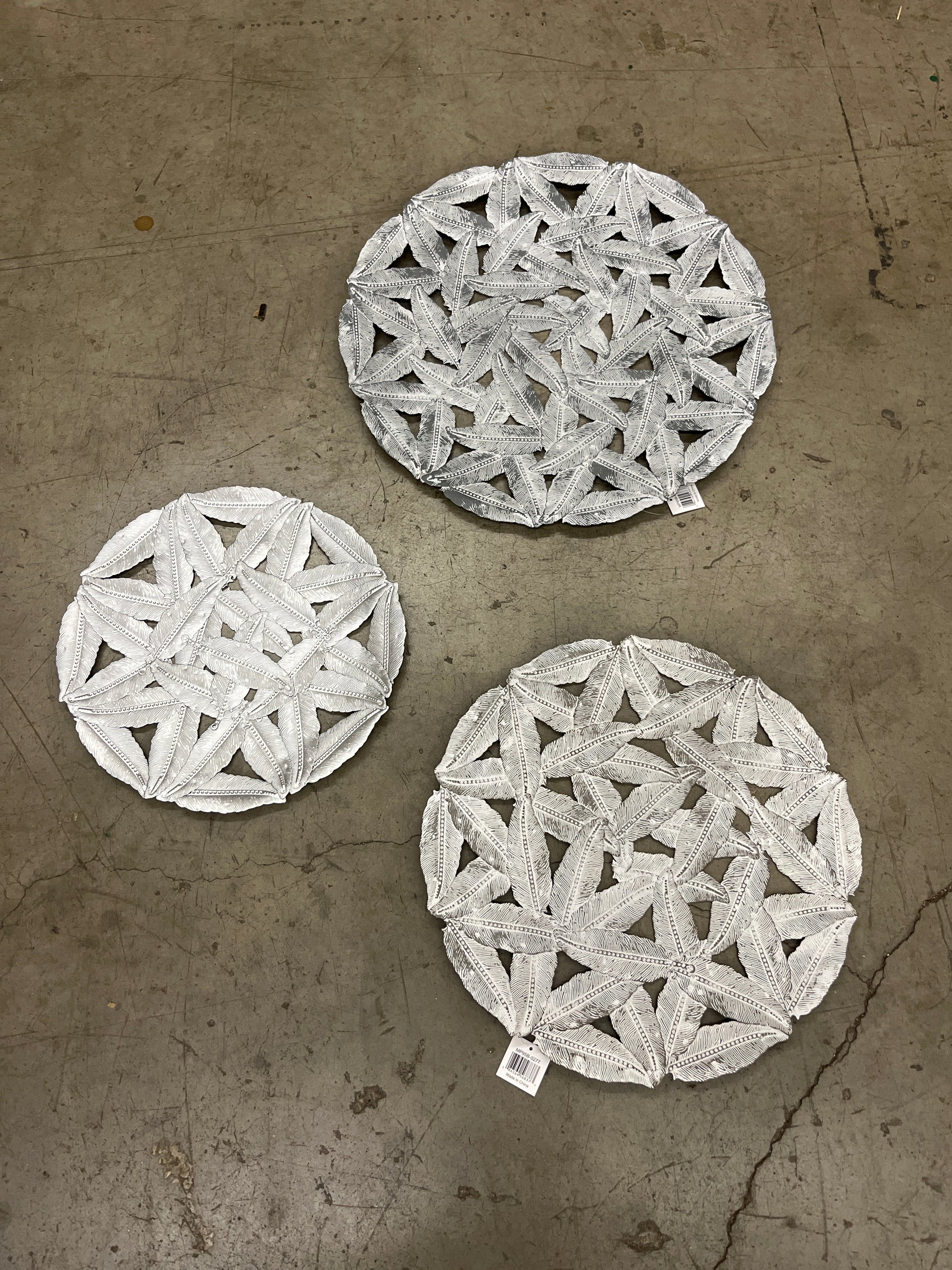 - Set includes: 1 Large Wall Decor: 20"W x 1.25"D x 20"H, 1 Medium Wall Decor: 17.25"W x 1.25"D x 17.25"H, 1 Small Wall Decor: 14.25"W x 1"D x 14"H