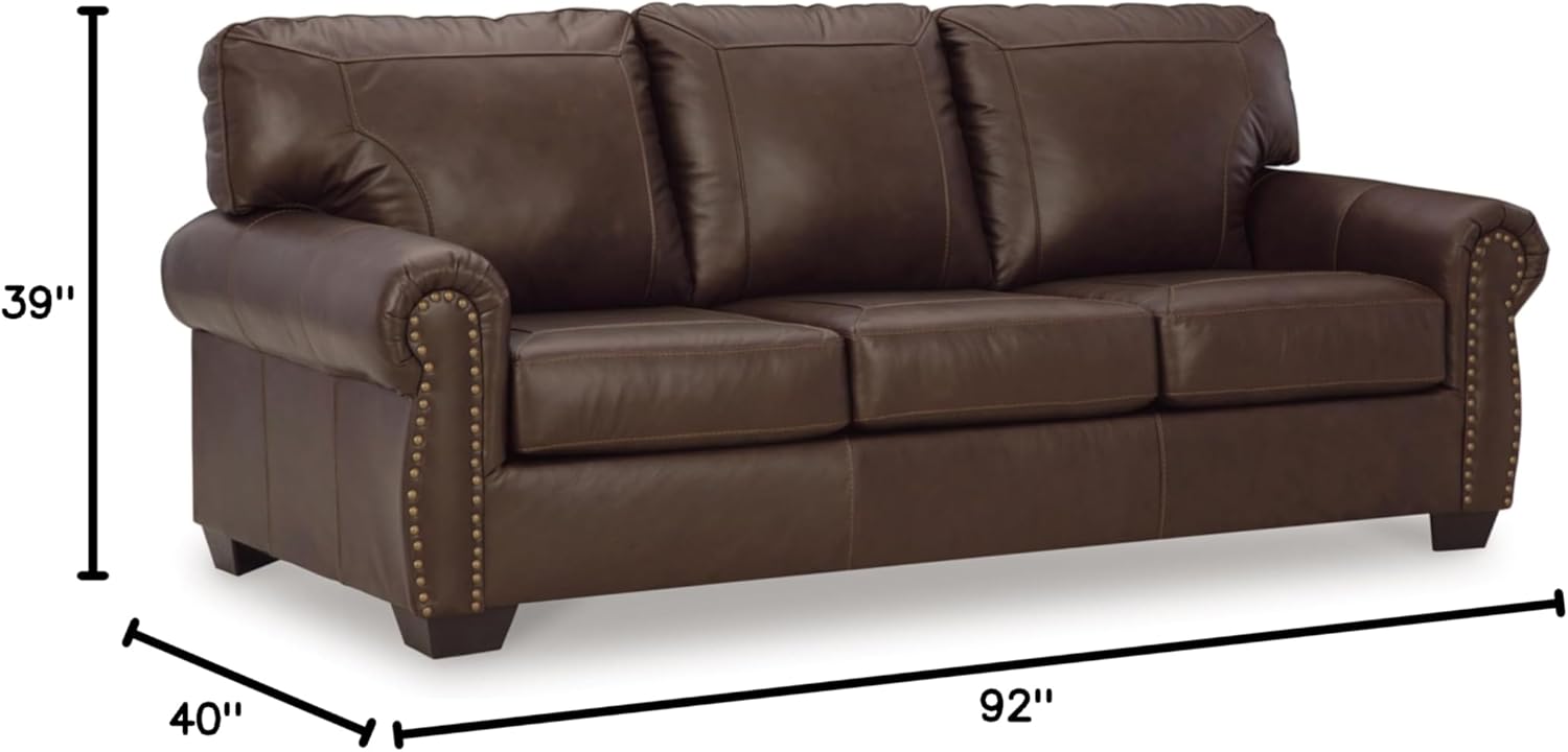 Signature Design by Ashley Colleton Classic Leather Match Sofa with Nailheads, Dark Brown - Retail $1057