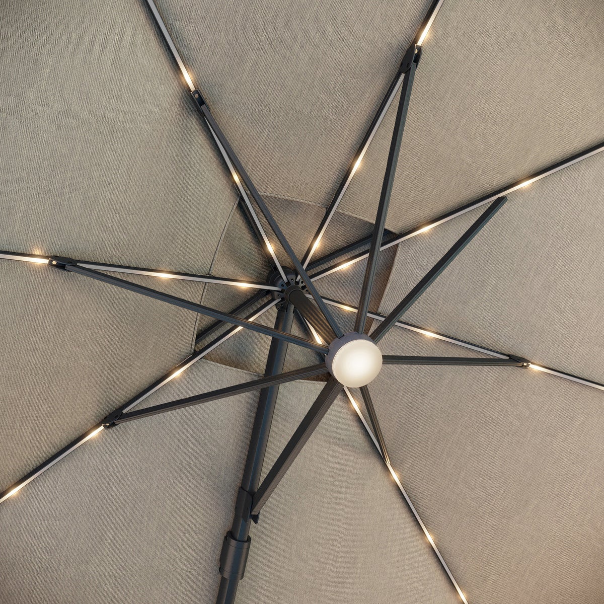 Seasons Sentry 10' Square Grey 2-Tier Solar LED Aluminum Cantilever Umbrella With Base