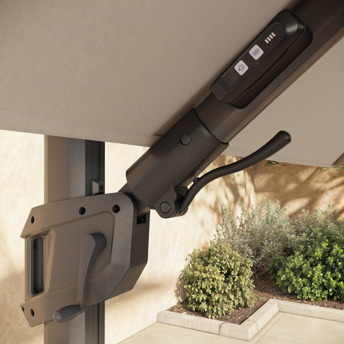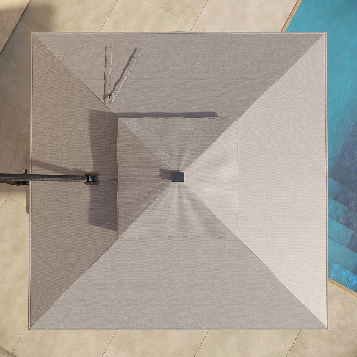- Seasons Sentry 10' Square 2-Tier Solar LED Aluminum Cantilever Umbrella With Base Two Tier Canopy Allows for Enhanced Wind Resistance and Improved Air Circulation