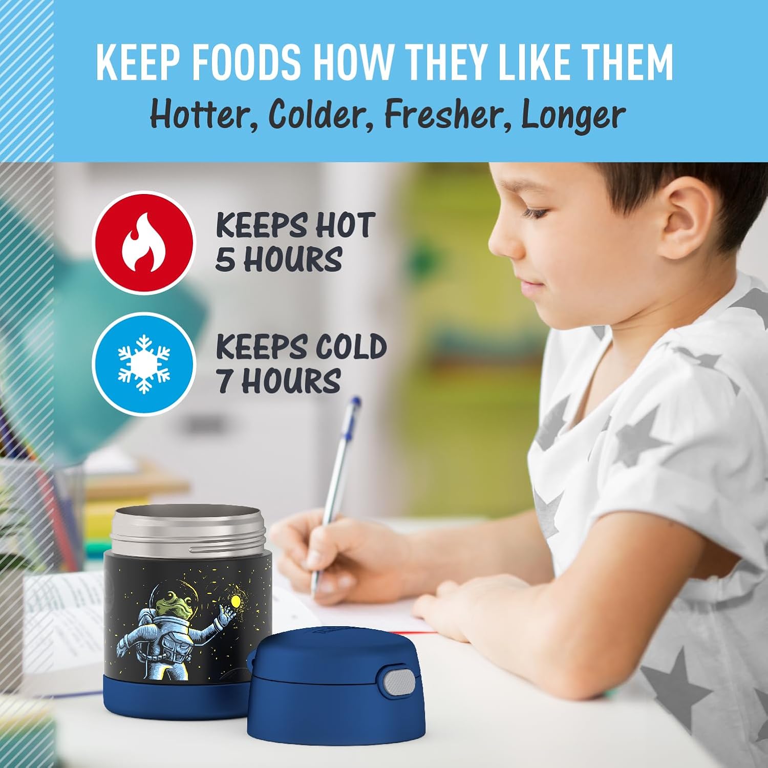 THERMOS FUNTAINER 10 Ounce Stainless Steel Vacuum Insulated Kids Food Jar with Spoon, Space Frog