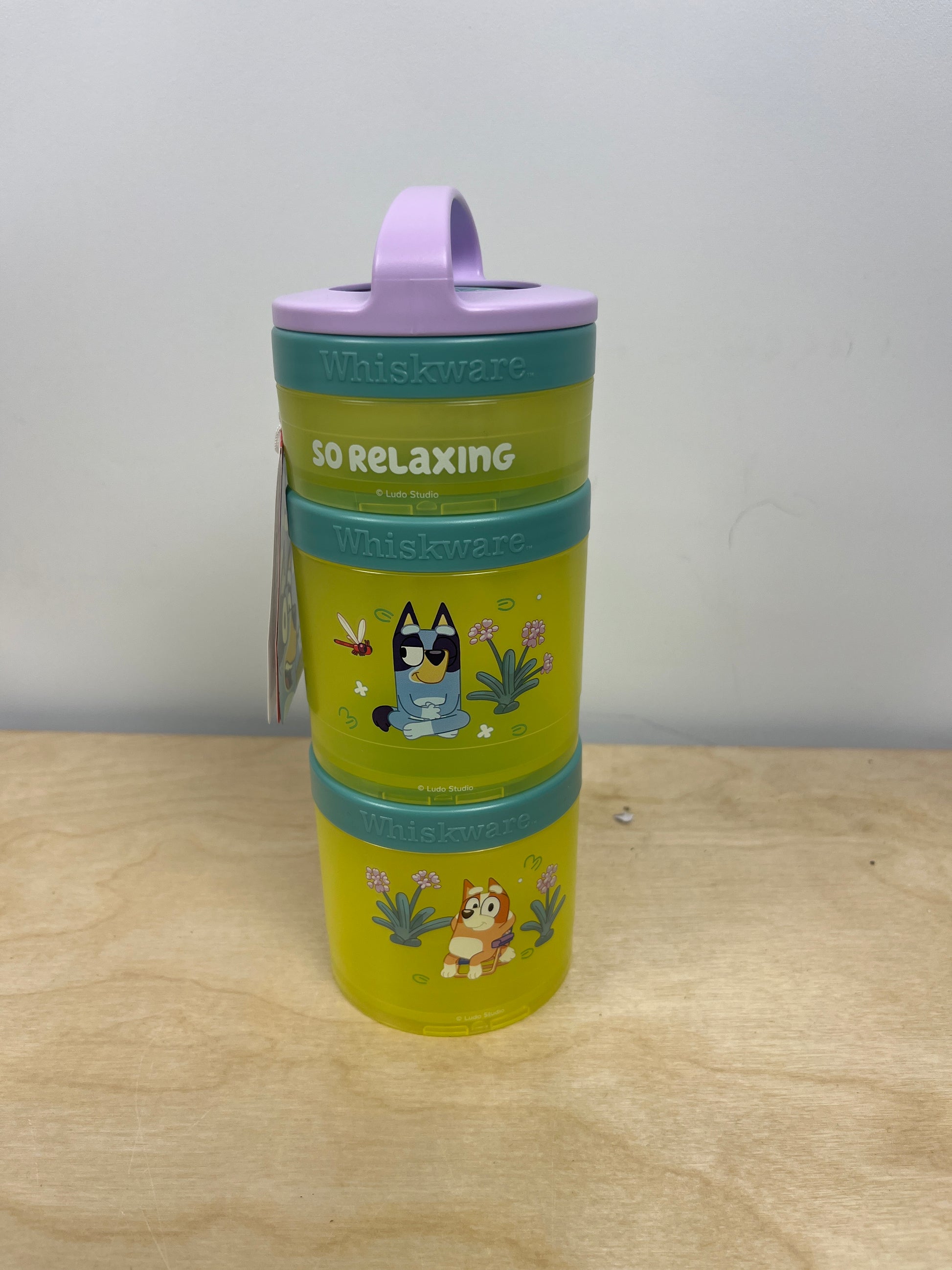 Whiskware Bluey Stackable Snack Containers for Kids and Toddlers, 3 Stackable Snack Cups for School and Travel, Bluey and Bingo, So Relaxing! - Retail $15