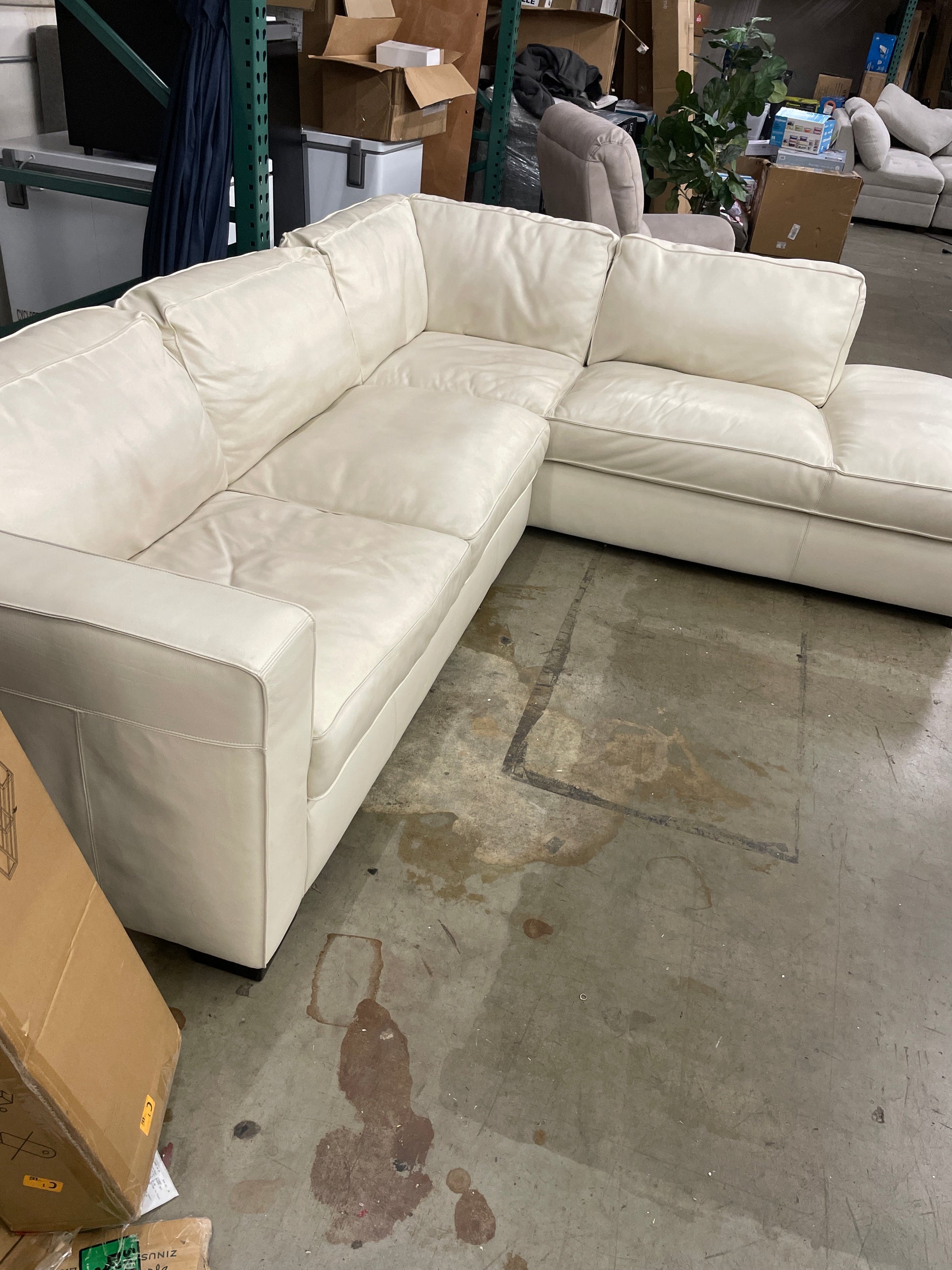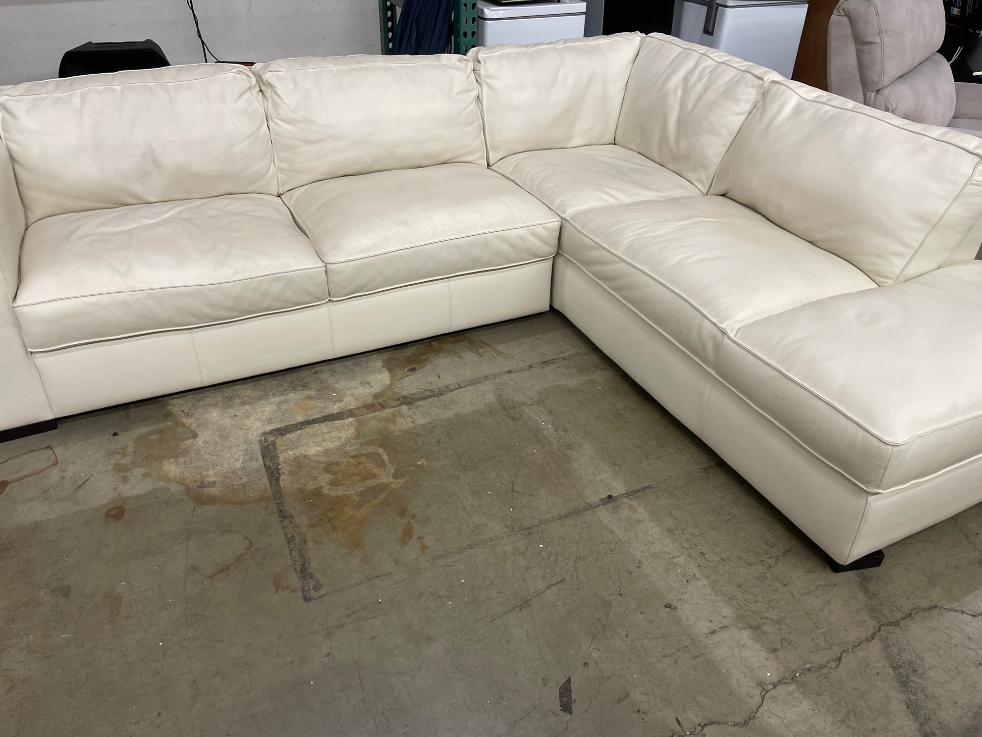 - Natuzzigroup Leather Sectional Color: CreamMaterial: Top Grain Leather on All Seating Areas, Armrests and Front Rails with Matching Split Leather on Sides and BackSolid Wood LegsElastic Webbed Seating