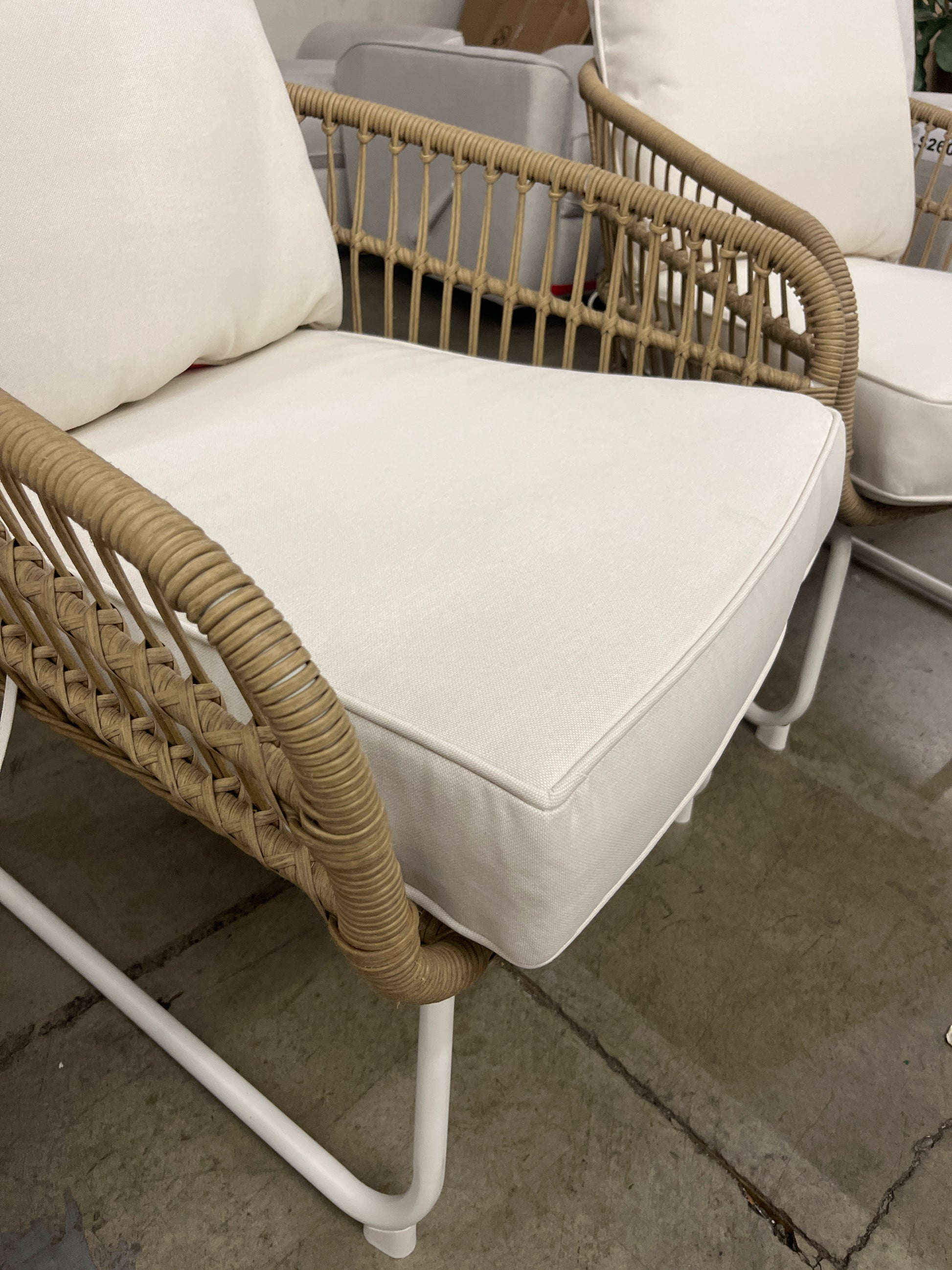 2pc Southport Linen Outdoor Patio Chairs with Metal Legs, Club Chairs Natural/White - Threshold: Wicker Accent, Weather-Resistant