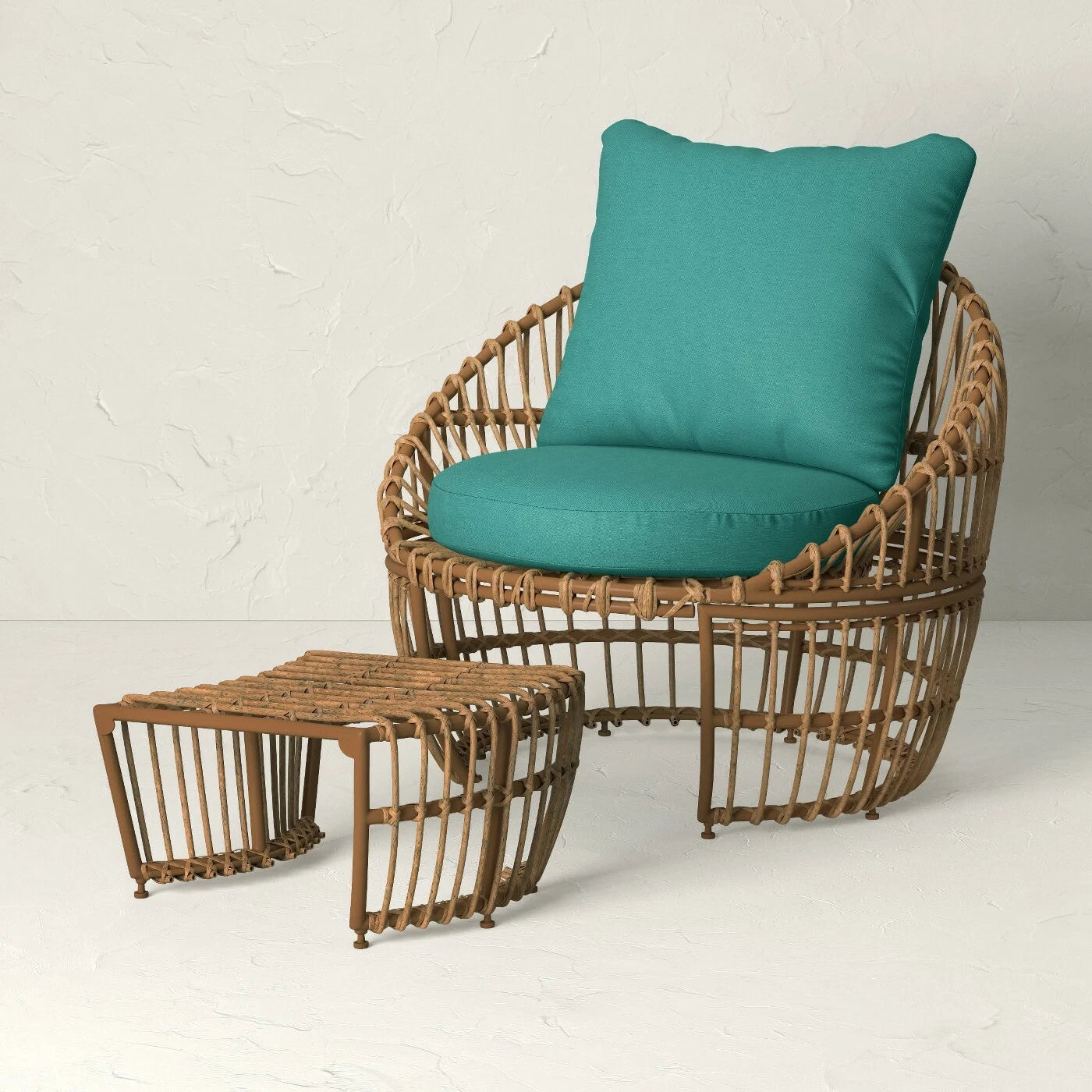 Designed with steel frames complemented by all-weather resin wicker, this boho club chair and matching ottoman also boast a rust-resistant and weather-resistant construction to help them stand up to the elements.