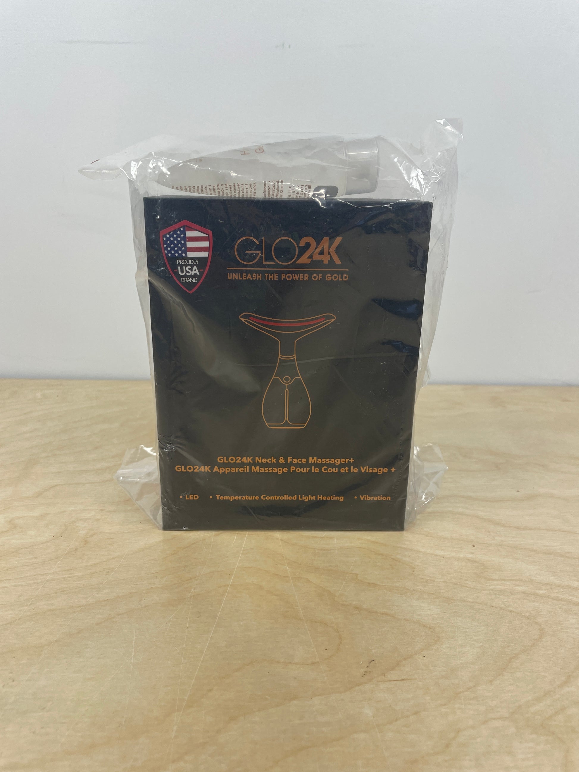 - GLO24k Skin Rejuvenation Device for Face & Neck + 1.7 fl oz Conductive Hydra Gel Triple Action LED, Thermal & Vibration Technologies