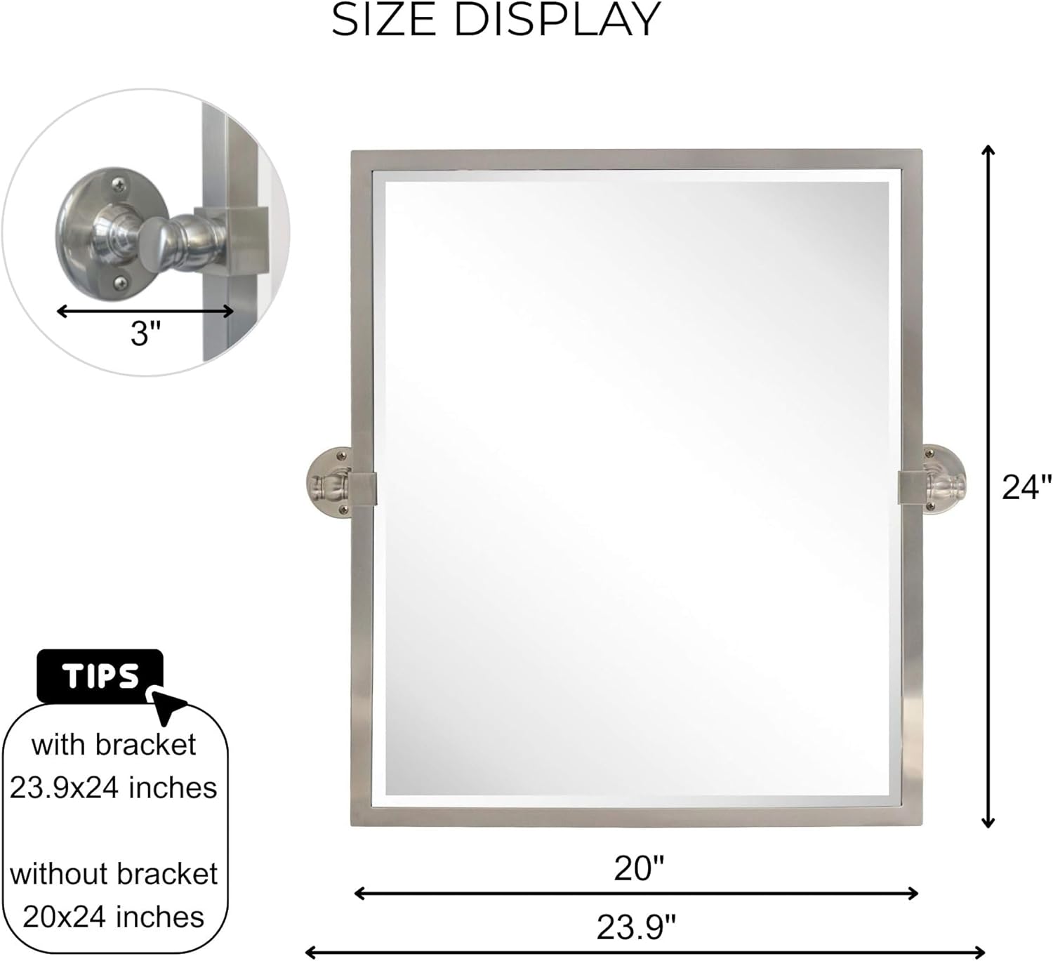 TEHOME Pivot Mirror Brushed Nickel Tilt Rectangle Bathroom Mirror Tilting Metal Framed Beveled Vanity Mirrors, Overall 23.9 x 24 inches (Mirrror 20 x 24 inches)