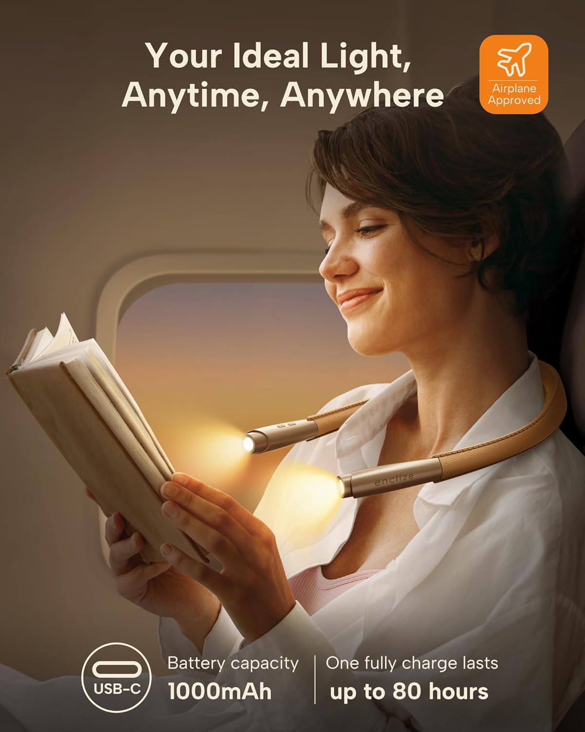 - 【Comfortable and Portable】More than just potent, our neck light is lightweight, weighing only a third of a scarf, and comfortable. The 360° flexible design allows it to snugly wrap around your neck, adjusting the angle for optimal lighting. Whether immersed in a book or on a lengthy flight, our neck light for reading delivers perfect illumination while remaining lightweight and portable.