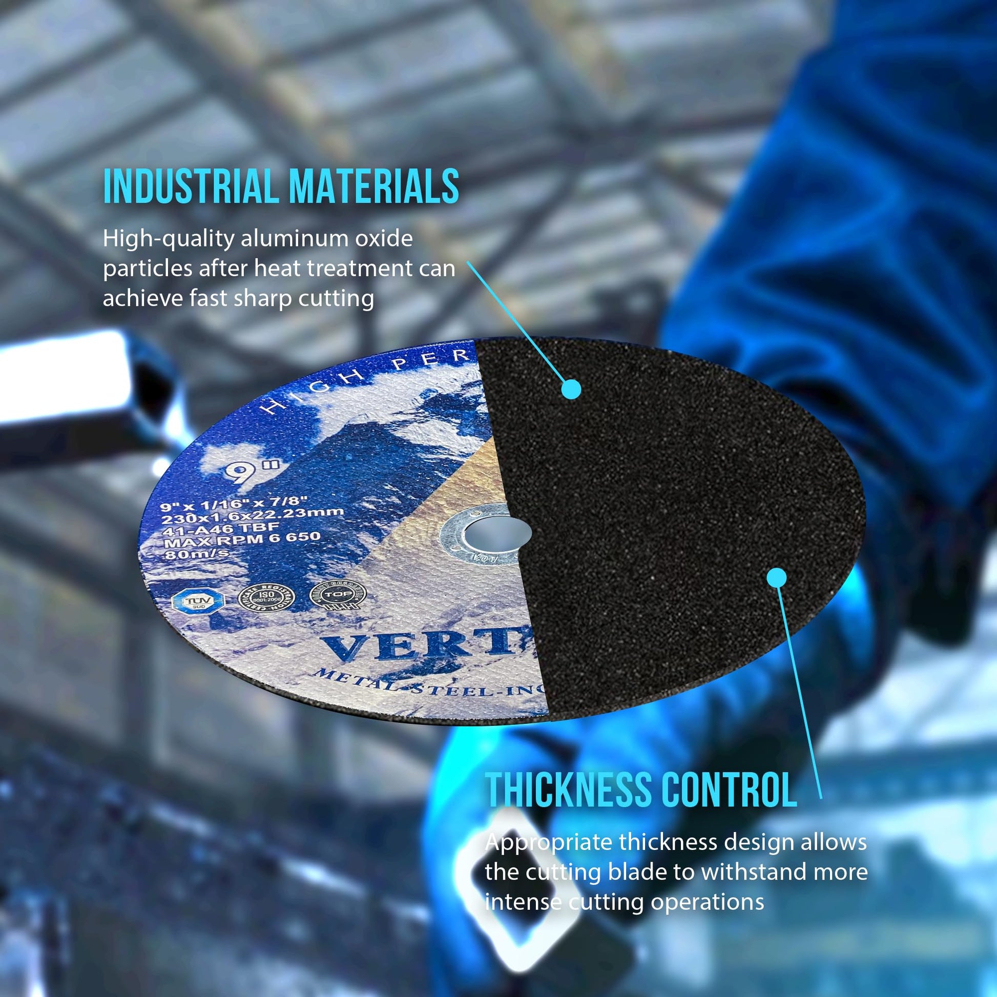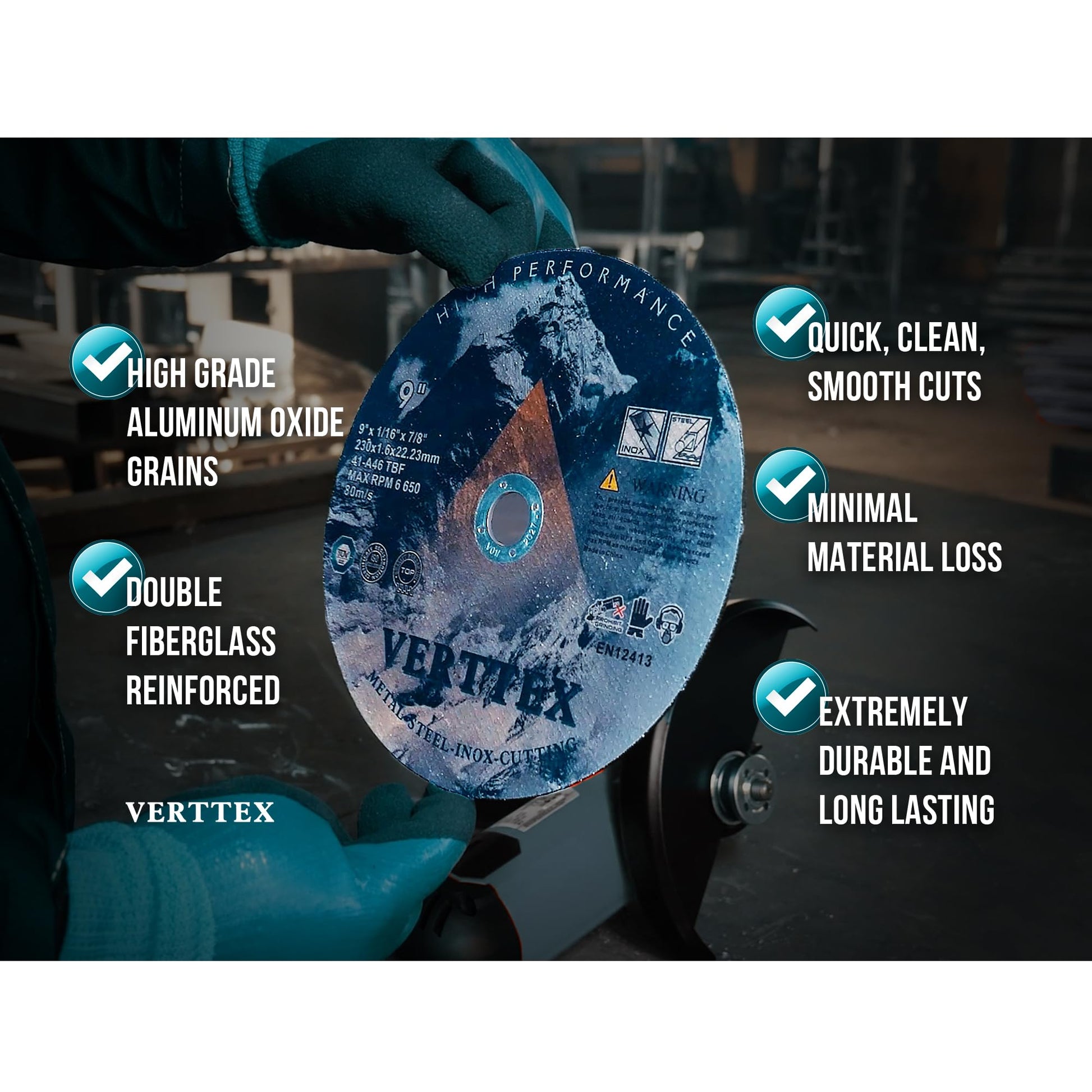 - PREMIUM CUT-OFF WHEEL: Verttex abrasive disc allows cutoff tools to slice through extremely hard steel alloy or delicate thin-gauge alloy sheets much faster with less force applied. Less exertion contributes to greater control and productivity over prolonged use.
