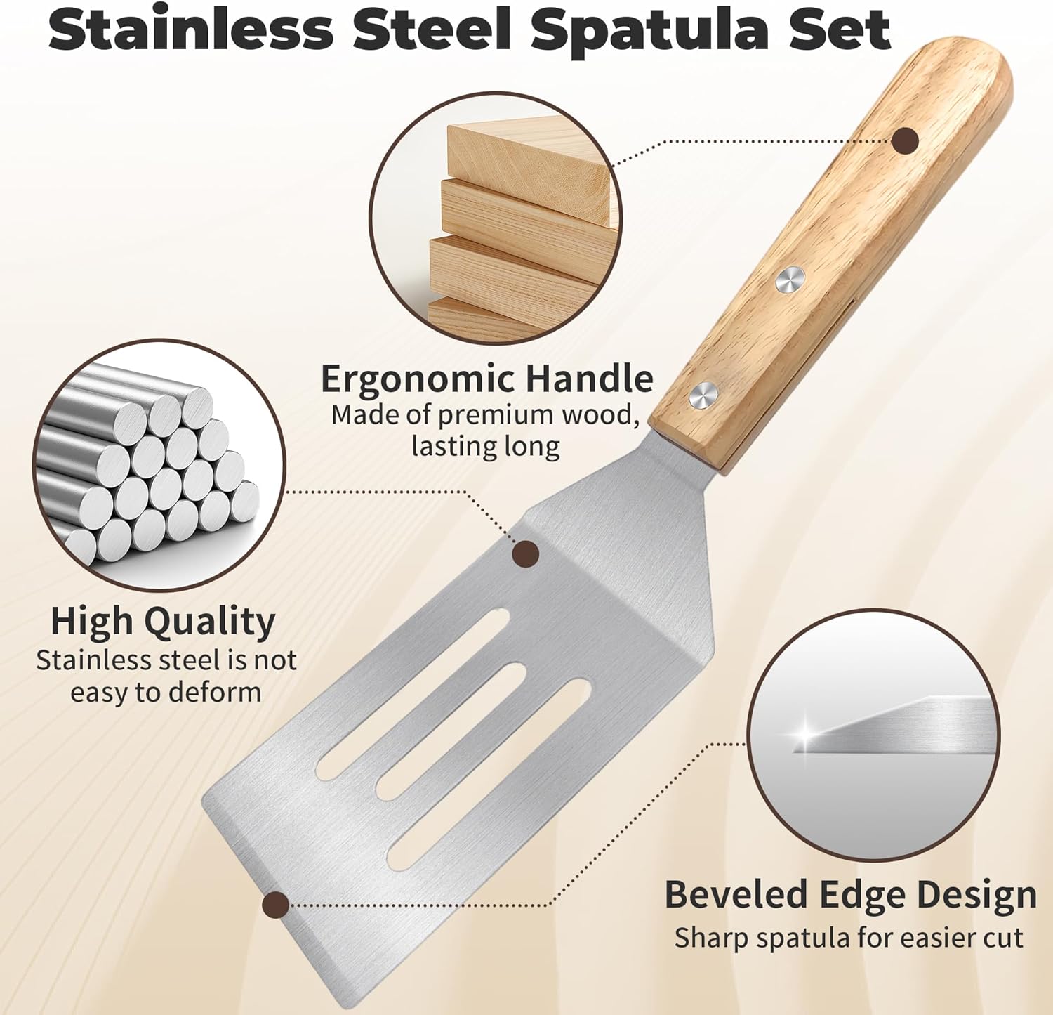 - 【Practical Edge Design】Thin sharp beveled edges for easy food cutting. Food can be easily turned over. It is also convenient scrape off those food bits from cast iron and carbon steel pan. Enjoy hassle-free cooking.