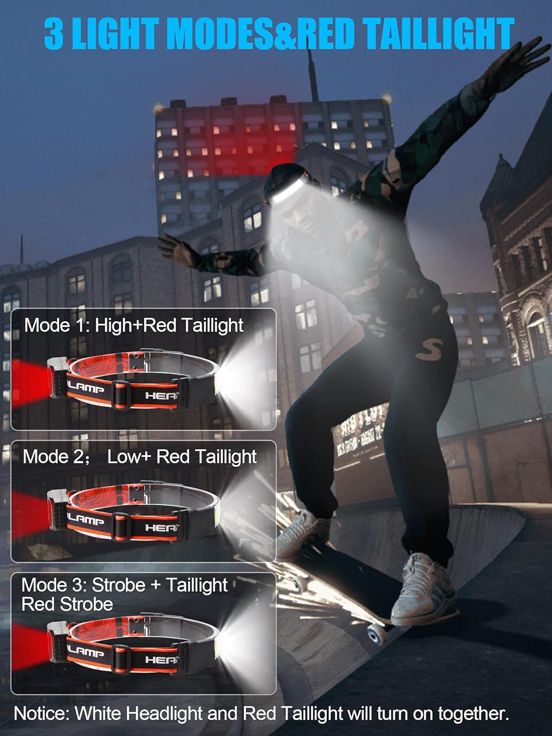 - Super Bright LED Headlamp ---Spriak led headlamp flashlight is 1000l, design with Cob headlight and Red Taillight, it’s much brighter than traditional headlamp, it can illuminate a large area in front of you, at the same time ensuring other people and animals can see your presence, avoid in time. Suit for any situation, such as running, hiking, camping, mechanical maintenance