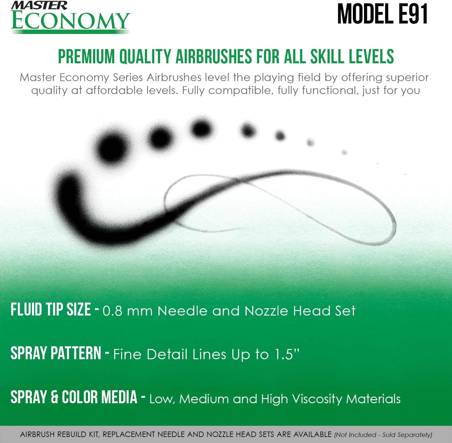 Master Airbrush Model E91 Airbrush Set Master Single-Action External Mix Siphon Feed Airbrush Set with 0.8mm Tip and 1/8" air inlet