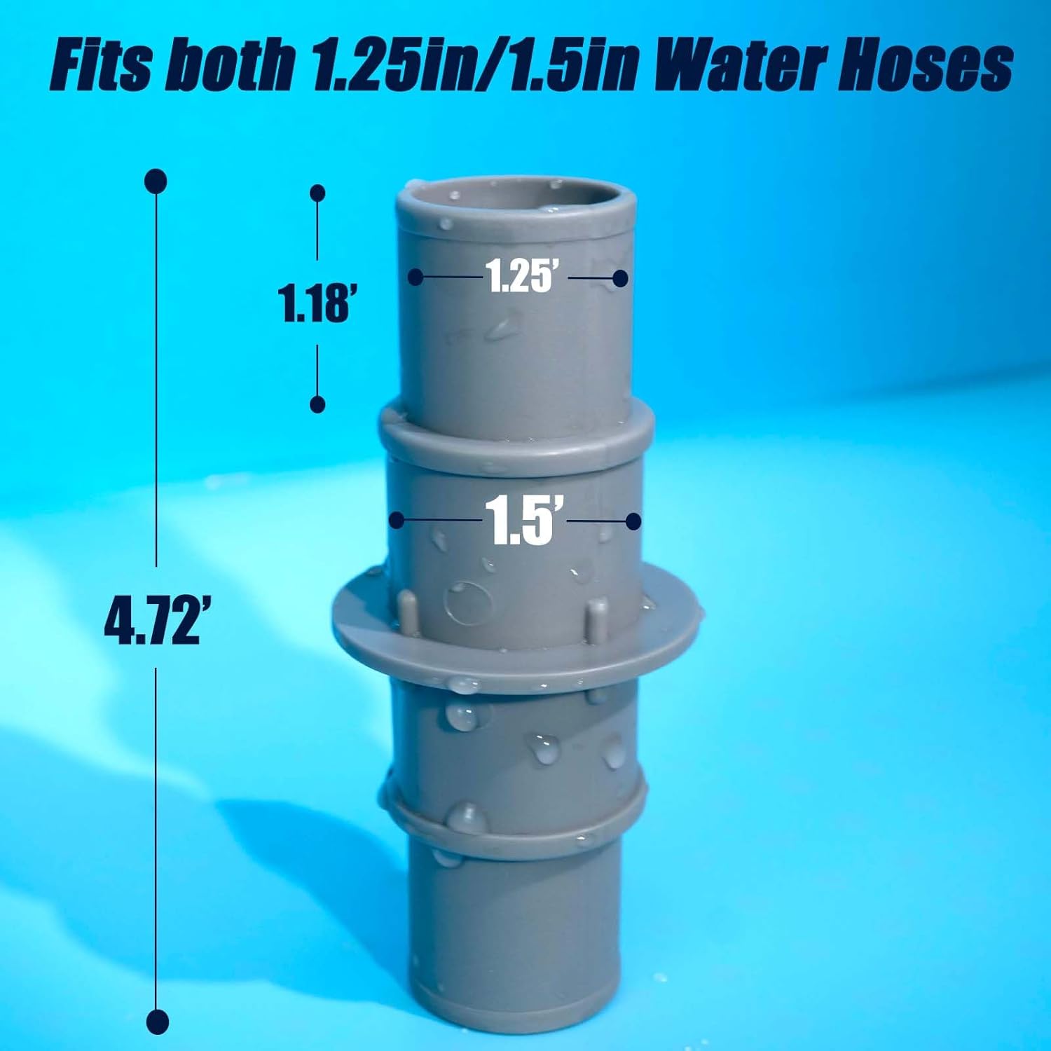 - 【Pool Hose Connector to Get More Flow to Filter】Summer is the best time to enjoy swimming and it’s time to strengthen your pool! Made of solid material to resist heat, this 1.5" & 1.25" pool hose connector is compatible with 1.5" or 1.25" hoses, tight fitting coupler for various pool filtration systems or hose adaptor.