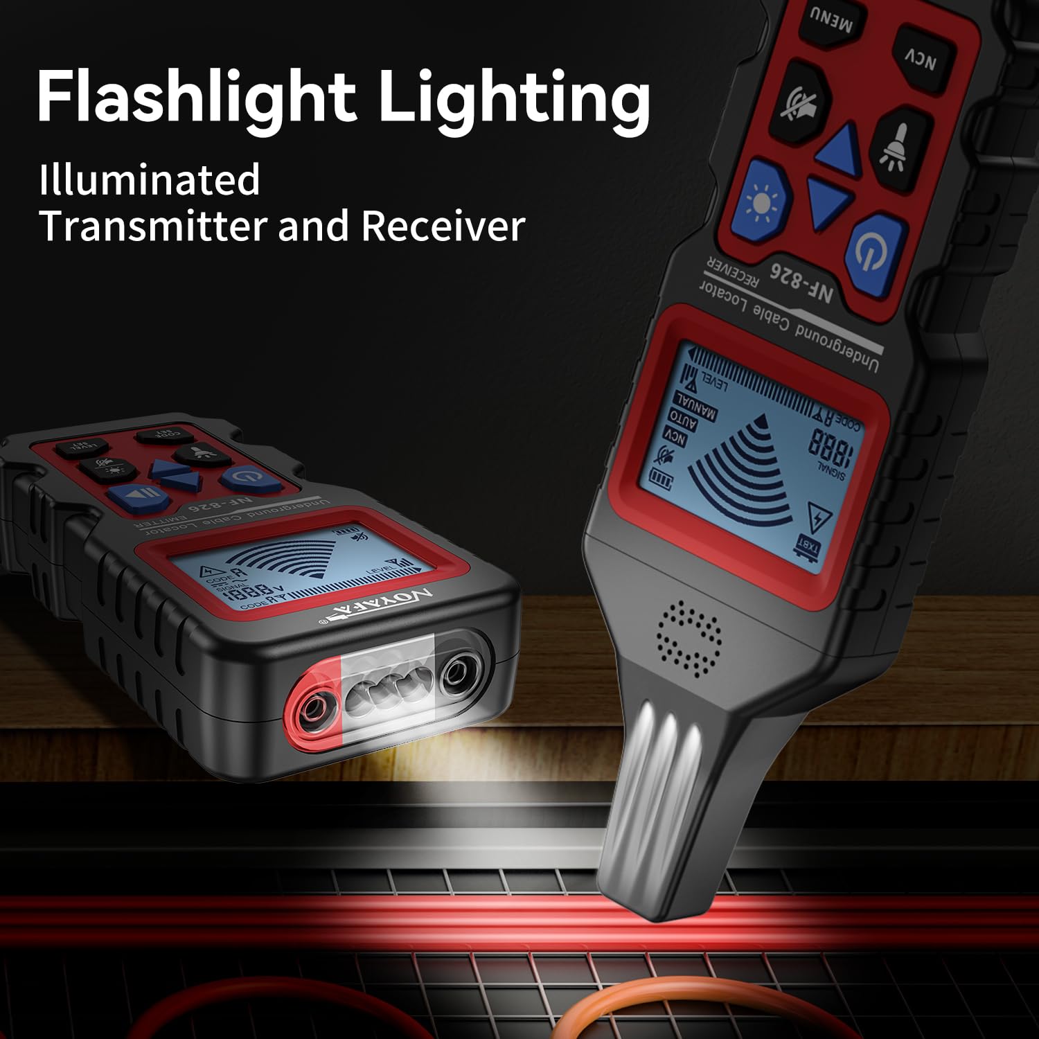 - High Sensitivit: NF-826 underground cable locator can be adjusted manually or automatically. The circuit tracer works under mute mode and features automatic frequency sweep functions and a flashlight, backlight, and automatic shutdown functions after 10 minutes of inactivity. Additional transmitters can extend or distinguish multiple signals.