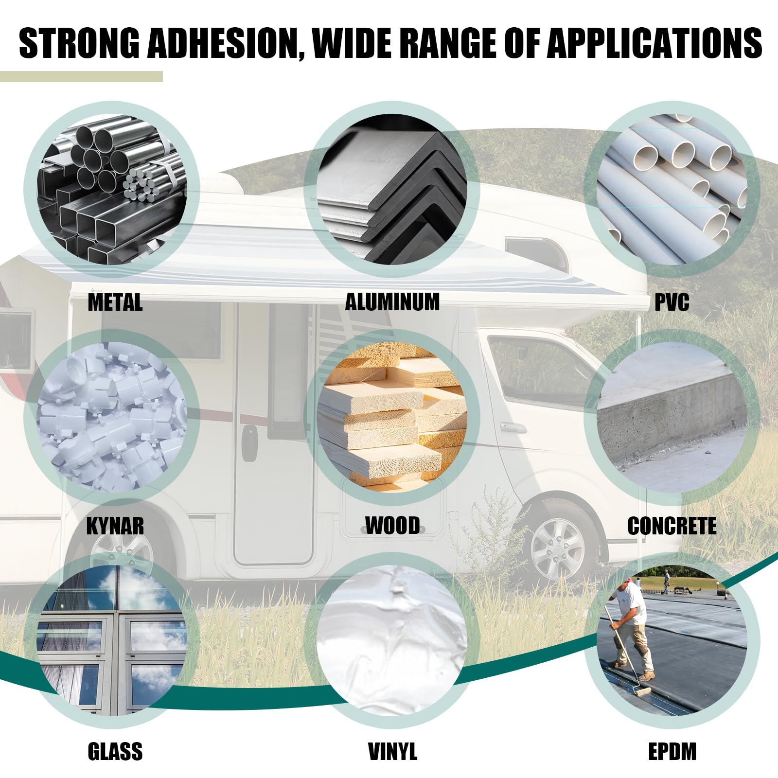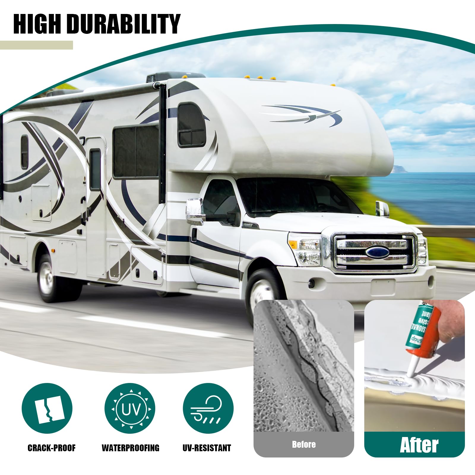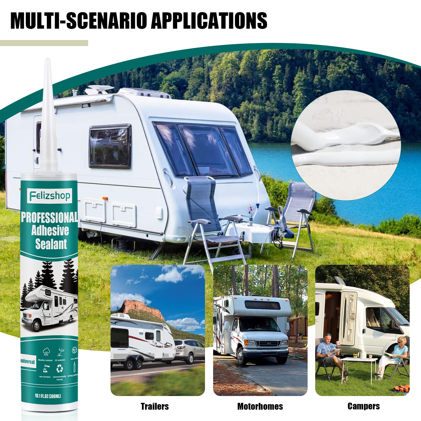 - 【Multi-purpose application】: Felizshop silicone sealant is suitable for multiple parts of RVs, such as window frames, door edges, ceilings and vents. It can bond and seal a variety of materials, including metal, glass, plastic and wood, to meet various construction needs and provide comprehensive protection.