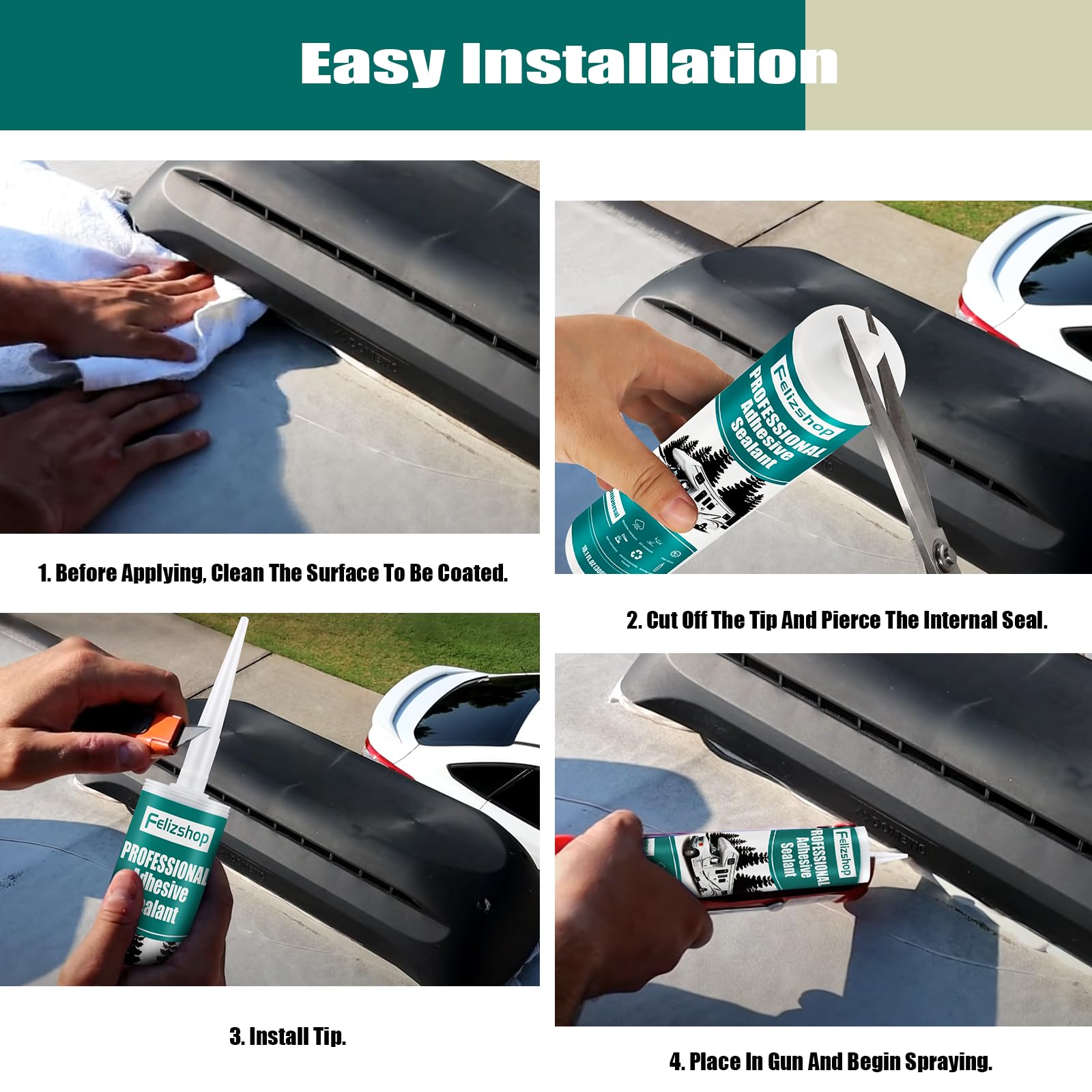 - 【Environmentally friendly and non-toxic, easy to use】: Felizshop RV Self Leveling Roof Sealant meets multiple safety standards, is environmentally friendly and non-toxic, does not release harmful gases, and is friendly to people and the environment. It is usually equipped with an easy-to-use extrusion tool, making the application process simple and fast, fast curing, and improving work efficiency, so that even novices can easily get started.