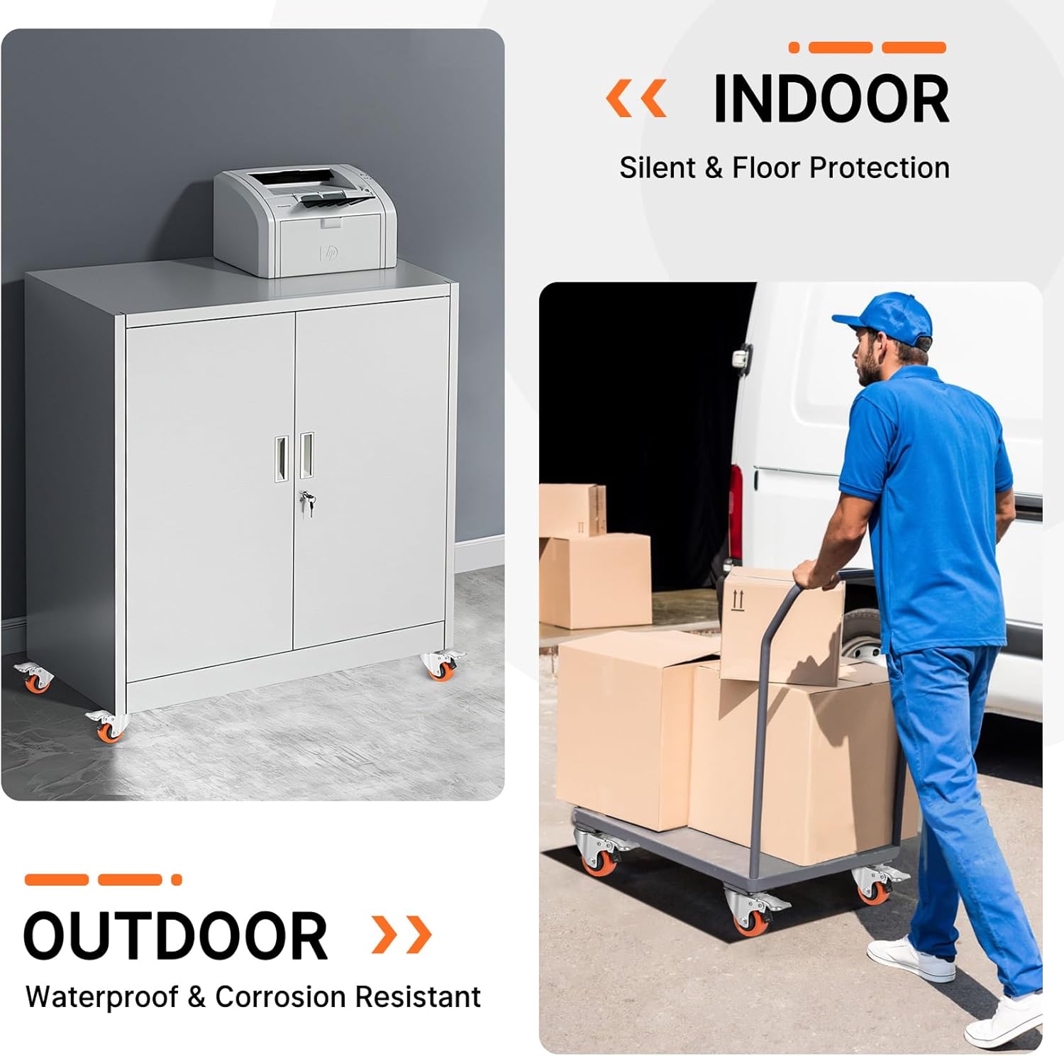 - FLEXIBILITY AND SAFETY: Enjoy the convenience of 360-degree swivel casters, allowing easy maneuverability. All 4 wheels are equipped with brakes featuring dual locking mechanisms, ensuring the safety of both people and goods from every angle