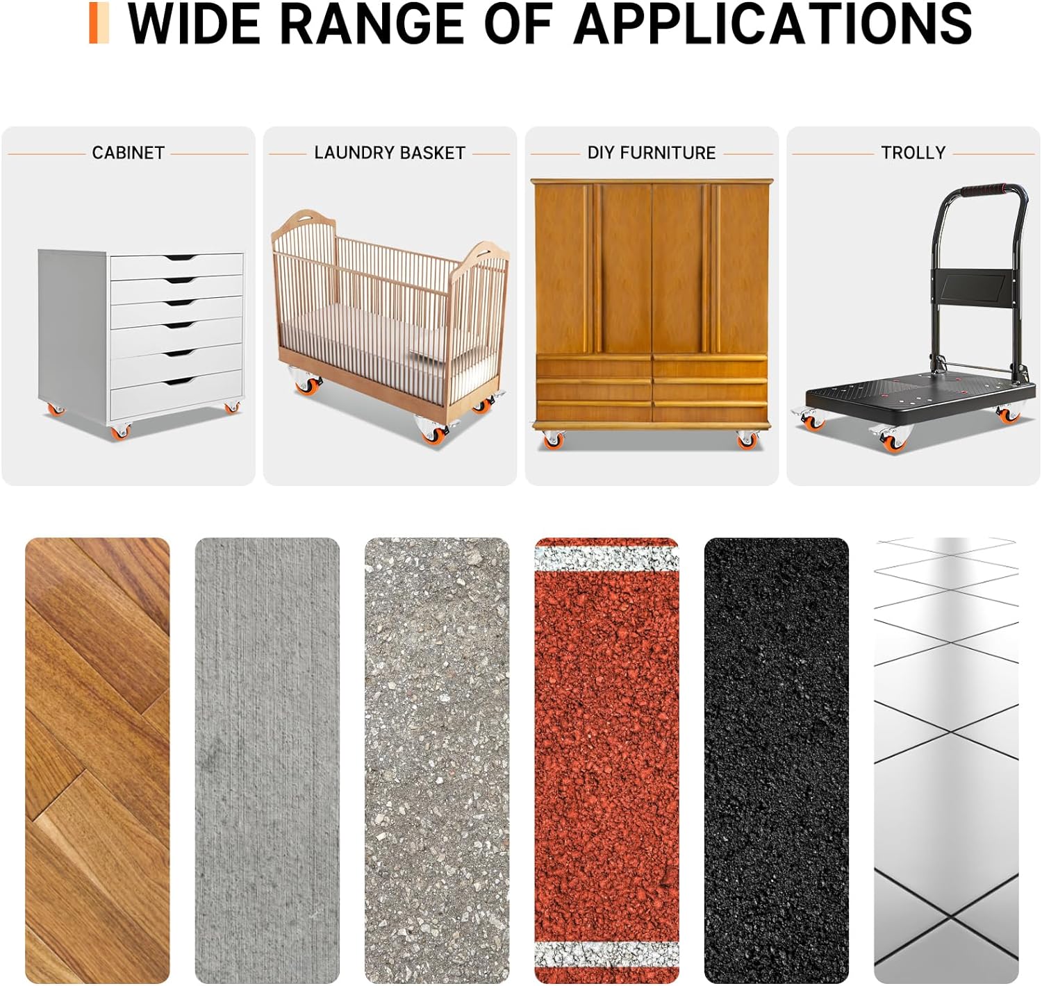 - ROLLING SMOOTH AND SILENT:WEIBIDA 5-inch caster wheels are made of non-marking polyurethane, providing a smooth and silent rolling experience. Rest assured, these wheels are safe to use on all types of floors, including hardwood floor