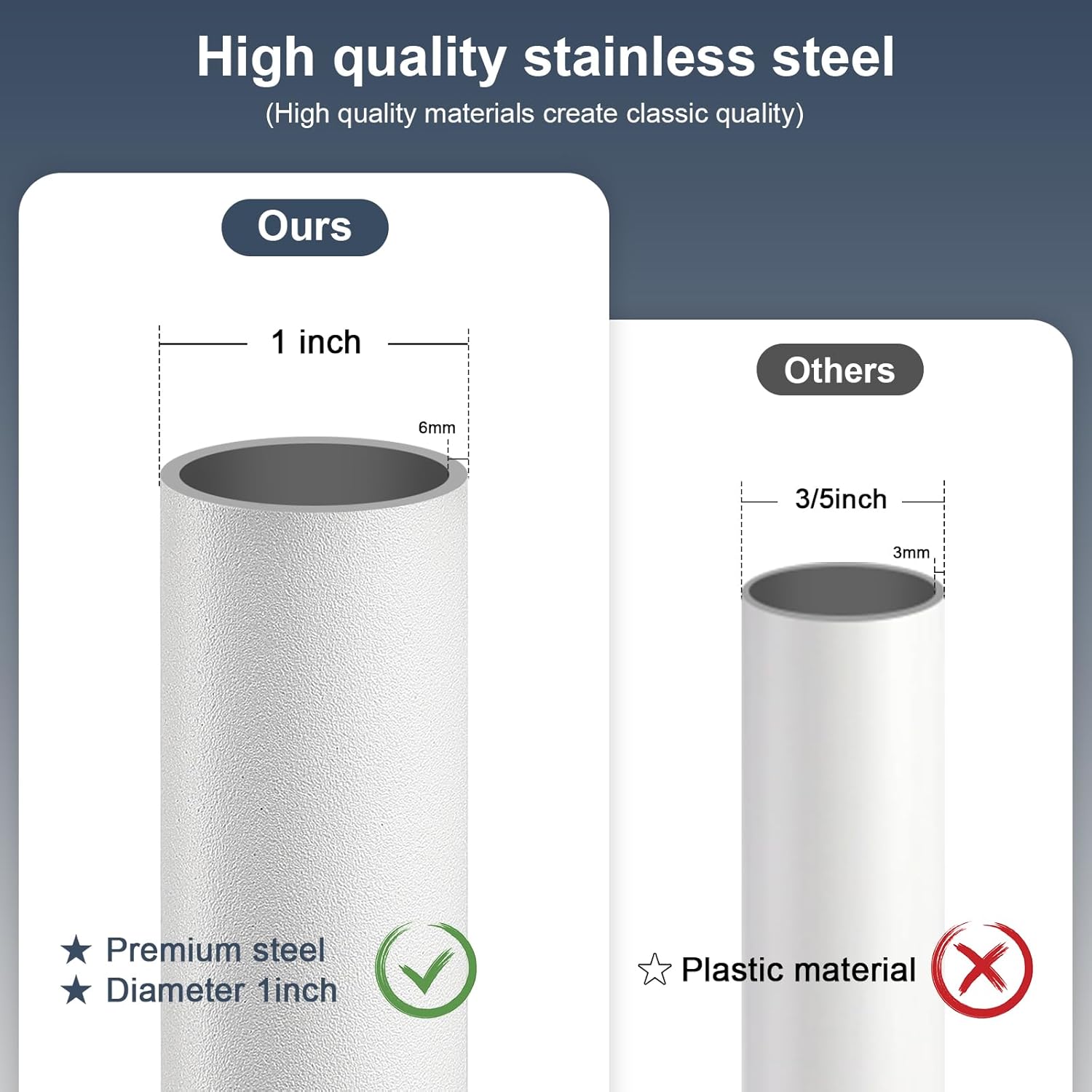 - Sturdy: The sliding glass door security bar is made of 1" diameter white painted metal, which is stronger and more durable than 3/5" window safety bars, less prone to damage and long-lasting.