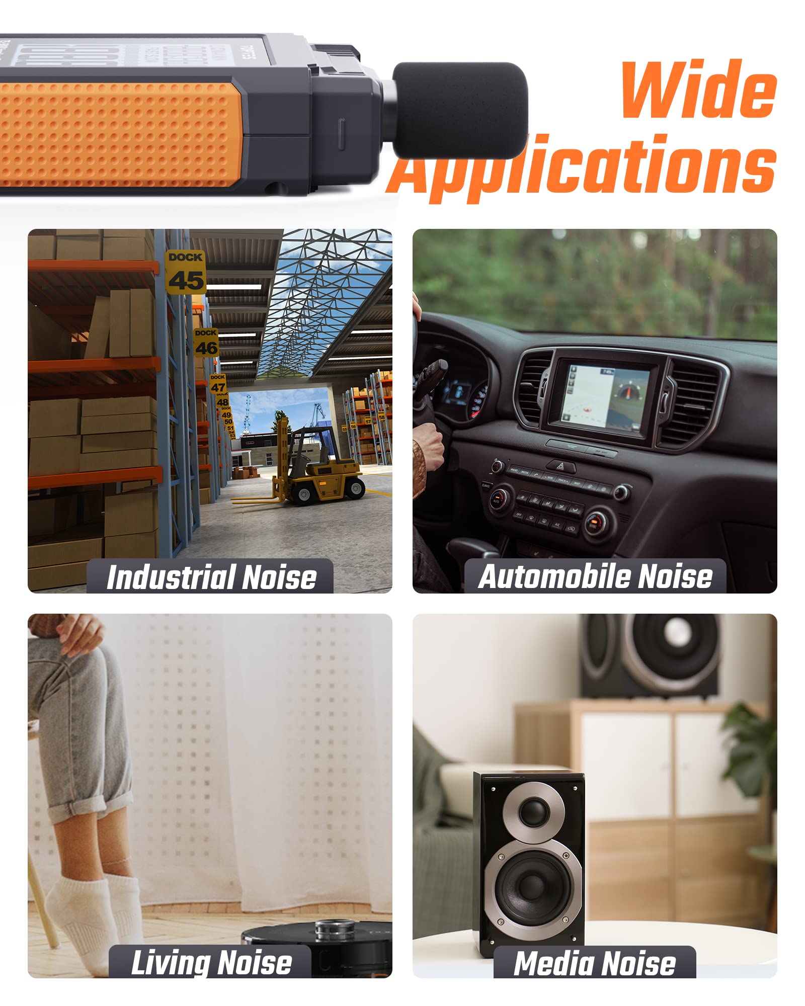- 2.25-inch LCD Screen with Backlight: This TS-501B sound level meter is measured noise levels are expressed in decibels and displayed on the 2.25-inch LCD screen, it easy to read on a big display design. Long press the backlight button to turn on a backlight, making it easy to view even in dim light