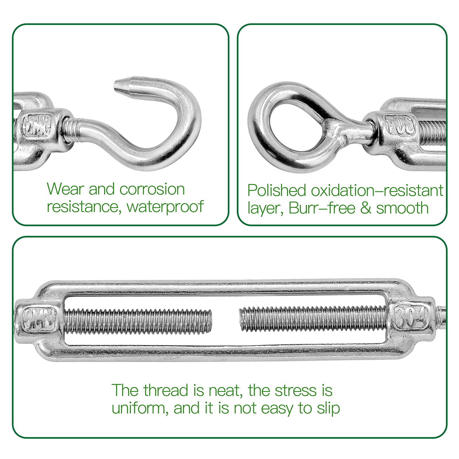 - 【Widely Application】: Perfect to go with weathered wood, industrial lighting fixture. It can also act as turnbuckles, stainless steel cable railing kit, act as sun shade hardware kit, hanging commercial grade string light, clothes lines, etc