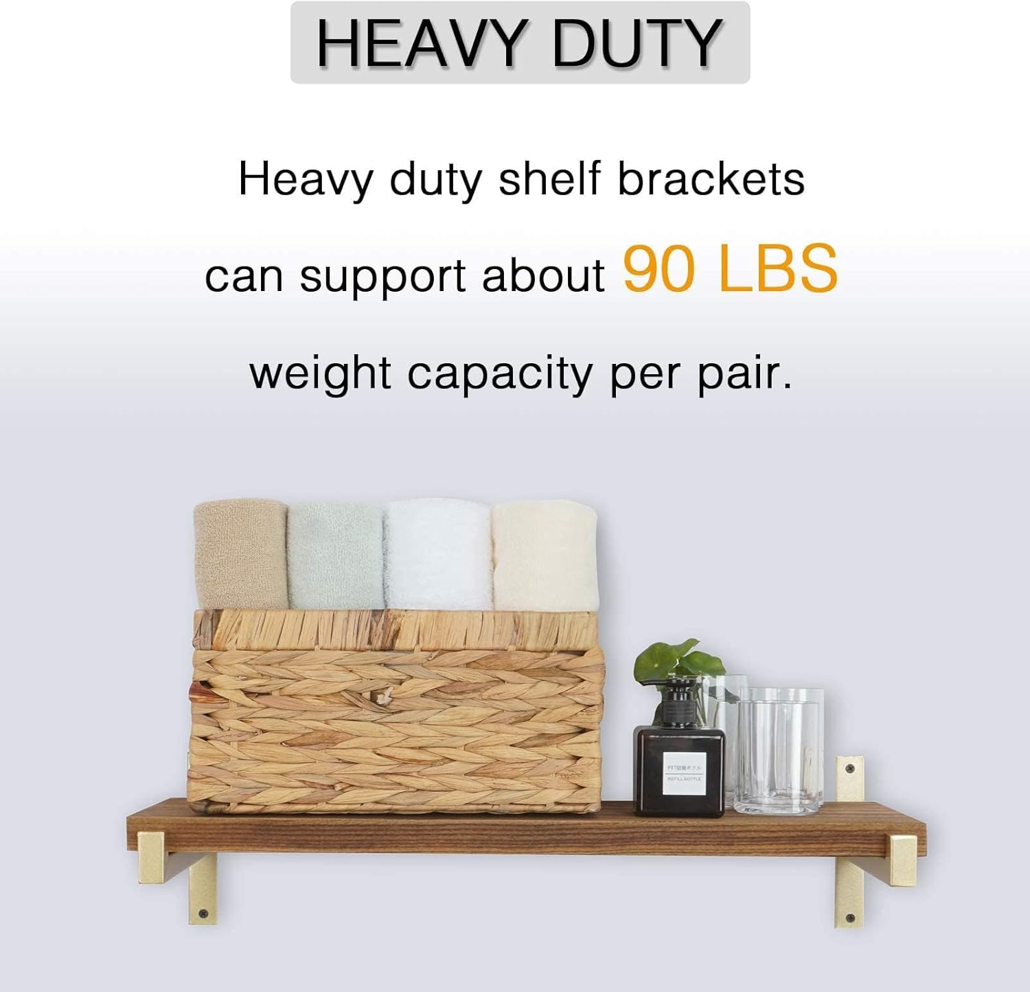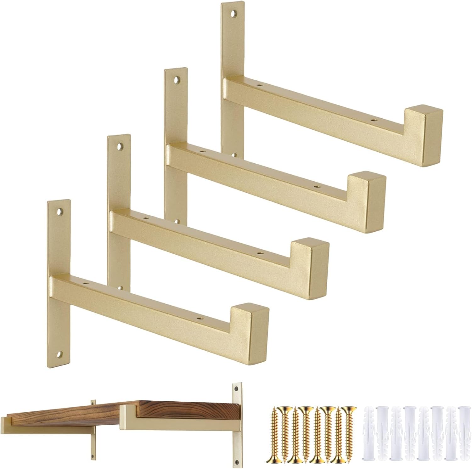 - Easy to Install: Package includes 4 Gold shelving brackets,screws & hard-wall anchors, planks are not included.