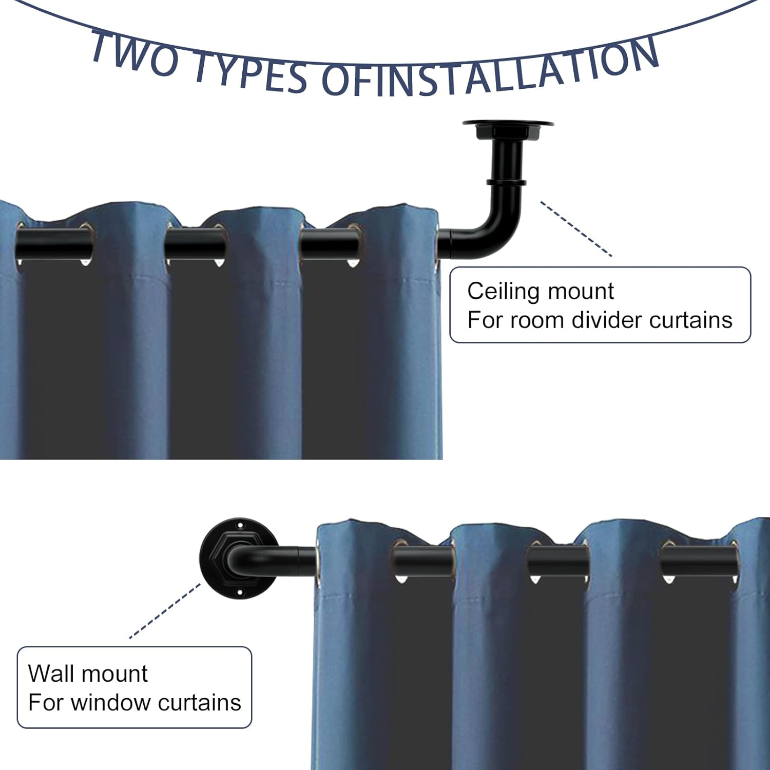 - CEILING MOUNT & WALL MOUNT & WRAP AROUND: The brackets of blackout curtain rods bring you two types of hanging, wall mounted or ceiling mounted. Flexible installation, you can use it as a room divider. Also it is designed to wrap around your window frame to save enrgy, block light and reduce noise