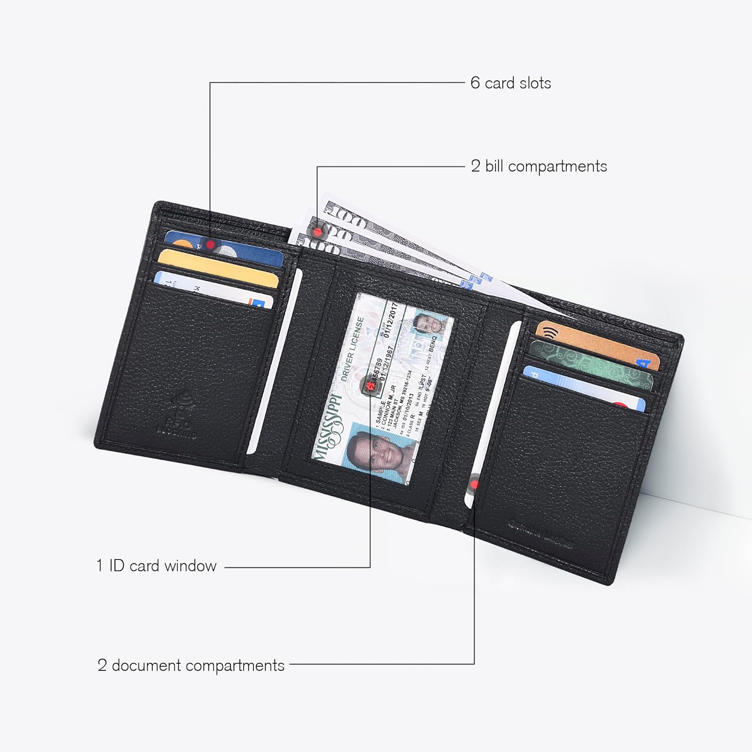 ESTALON Leather Trifold Wallet For Men - RFID Blocking - 6 Card Slots, 2 Slip Pockets & 1 Front ID Window - Minimalist Design, Slim Wallet