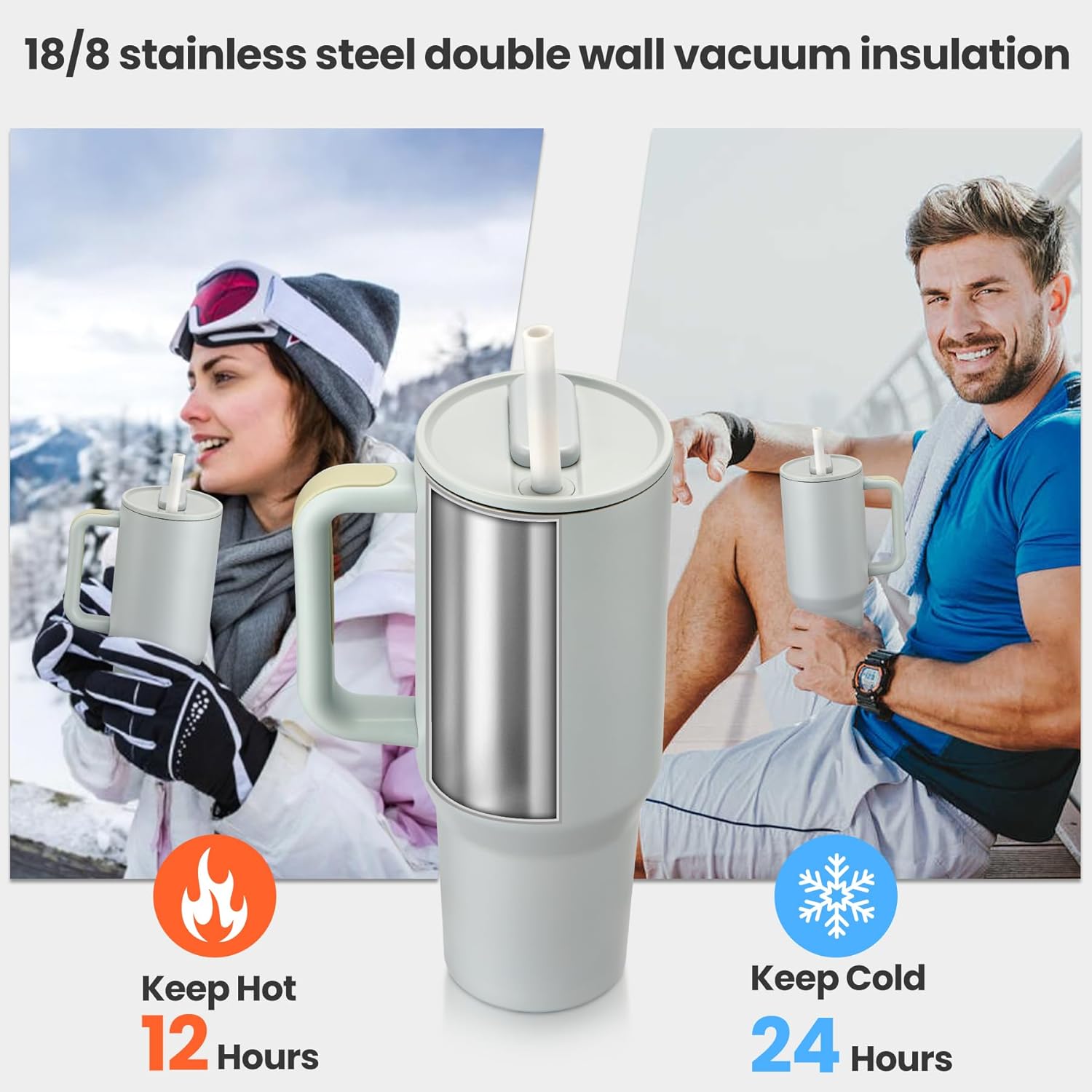 - Portable design - Our stainless steel tumbler design to fit perfectly into the car cup holder, and the non-slip grip handle is ergonomic and portable