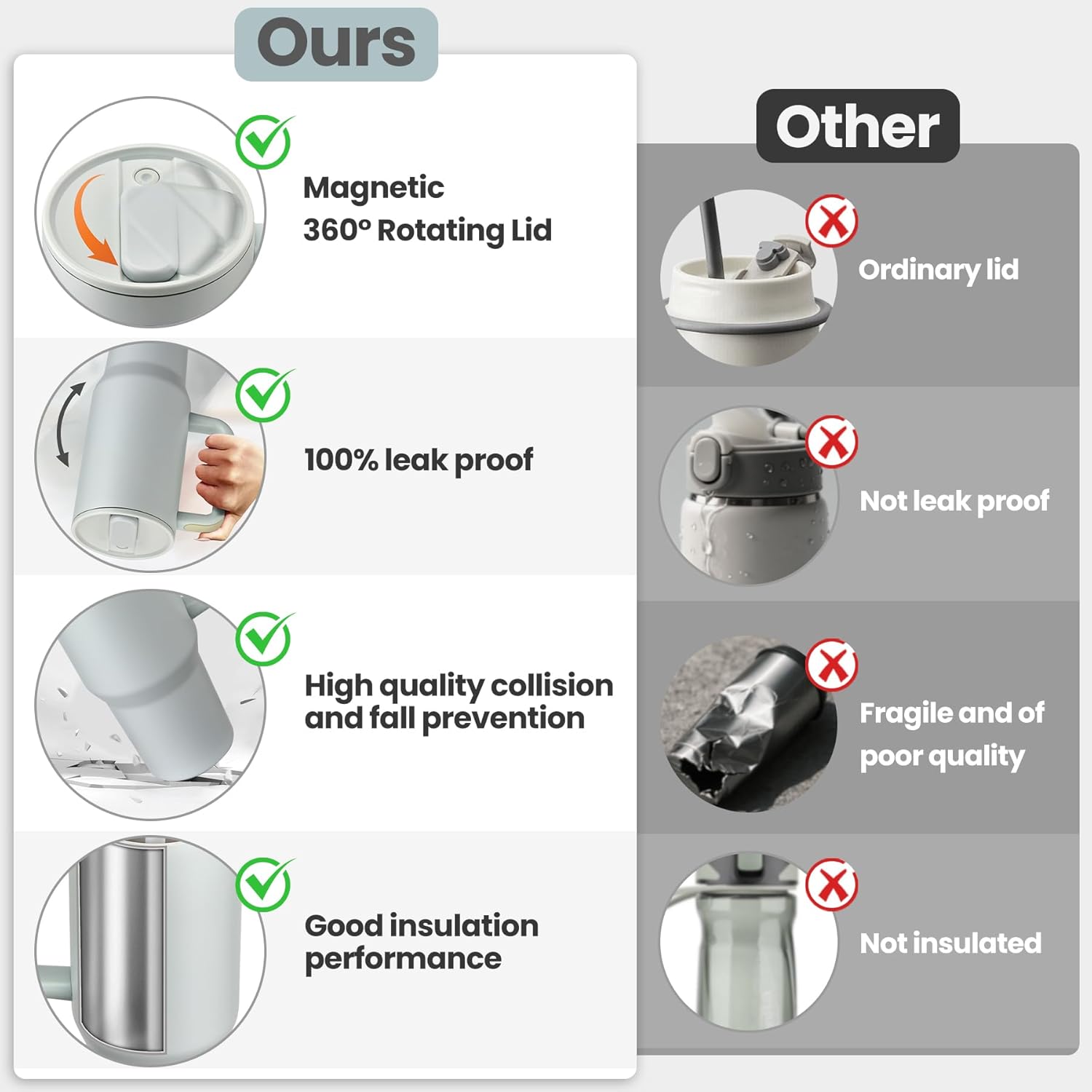 - Innovative Magnetic Lid Design: Features a unique magnetic lid that ensures easy one-handed operation, making it perfect for drivers, travelers, and outdoor enthusiasts. Fun magnetic switches add a touch of entertainment and stress relief to your day