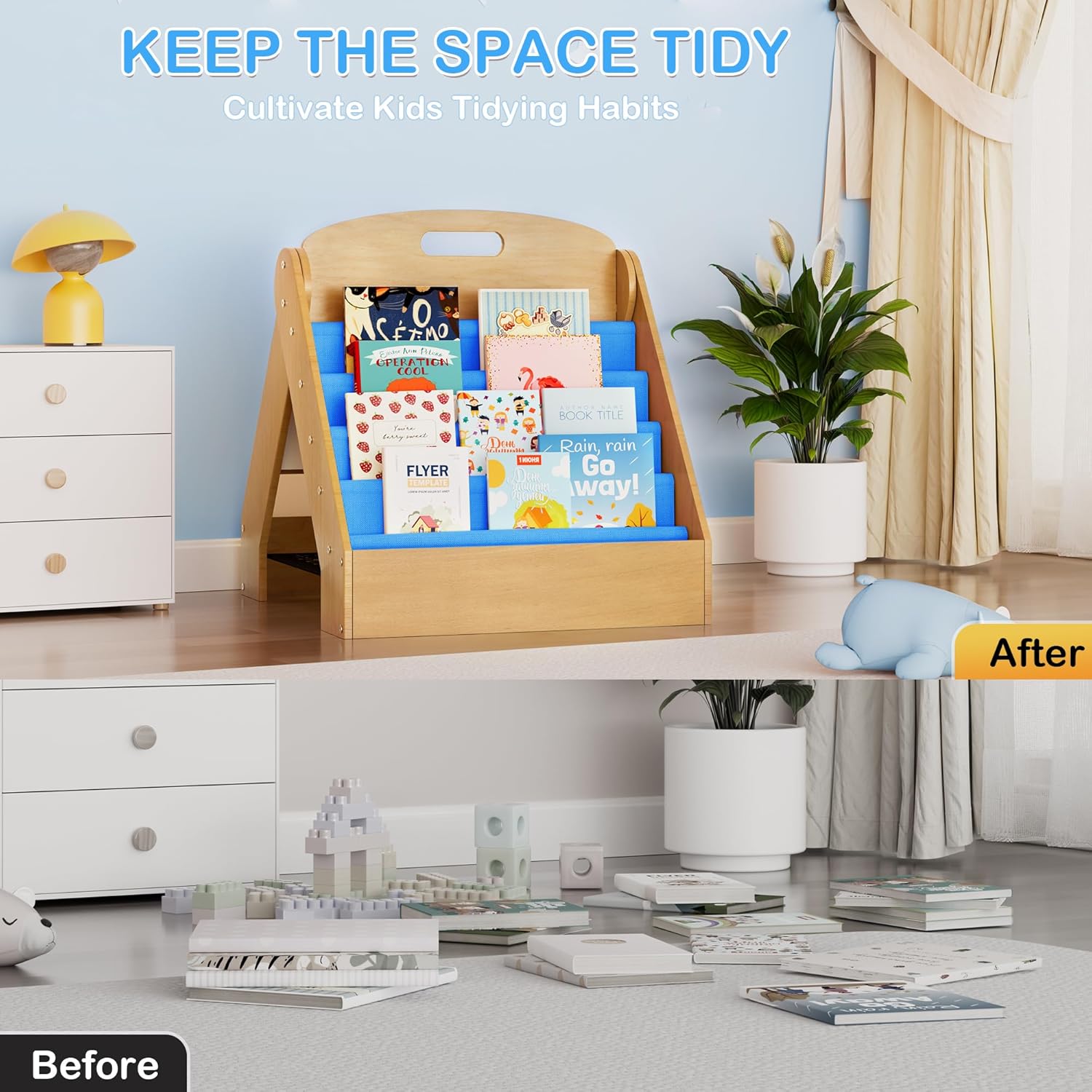 - [Charming Stylish Addition]: More than just kids storage organizer, this adorable kids book shelf enhances any space with its soft, modern design. It blends seamlessly into nurseries, playrooms, and bedrooms.