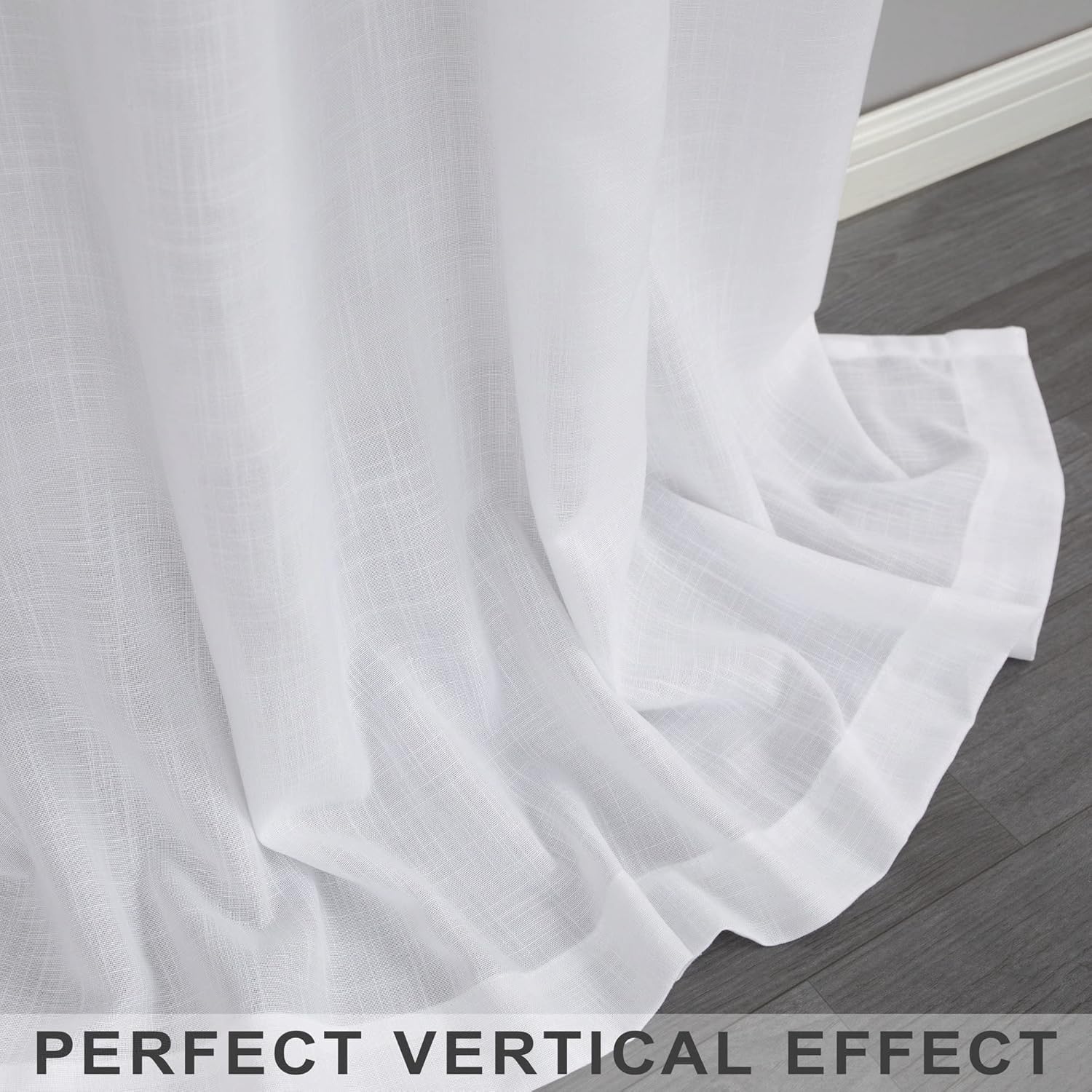 Mrs.Naturall White Curtains 60 Inch Wide for Living Room 2 Panels Set Rod Pocket Extra Large Drapes Semi Sheer Linen Room Dividing Curtain for Patio Sliding Glass Door Family Room Apartment 60x96 Long