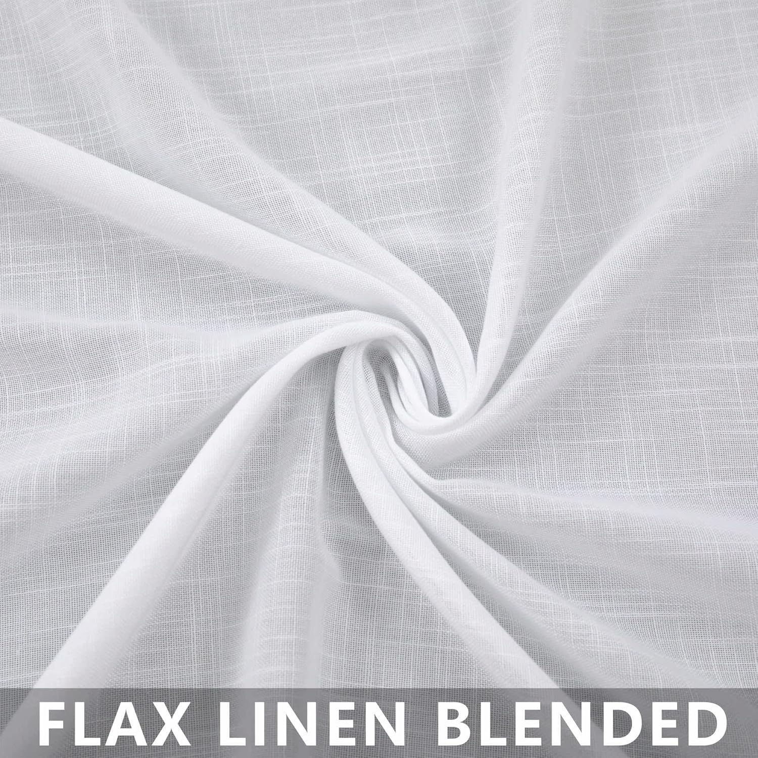 - Soft Linen Blend Fabric: 20% flax fibers(brown threads) blended with polyester creates a substantially soft fabric with more fluid drape and a lack of wrinkles. The cross-woven design brings subtle pattern and linen texture compared with plain sheer, perfect for any shabby chic, modern farmhouse, country chic, rustic, coastal beach, or classic traditional style to accent windows