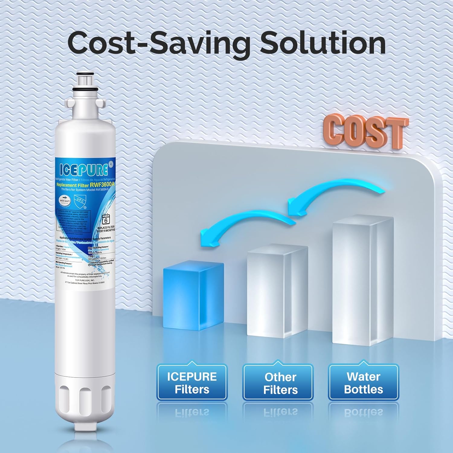 - EFFICIENT FILTRATION CAPACITY - ICEPURE RWF3600A refrigerator water filter replacement for GE RPWF reduces many harmful substances from your water including 99% of Chlorine, taste, THM, VOCs, Particles and all other major impurities, significantly improving the taste of drinking water to provide pure-tasting water, while retaining minerals beneficial to the human body.