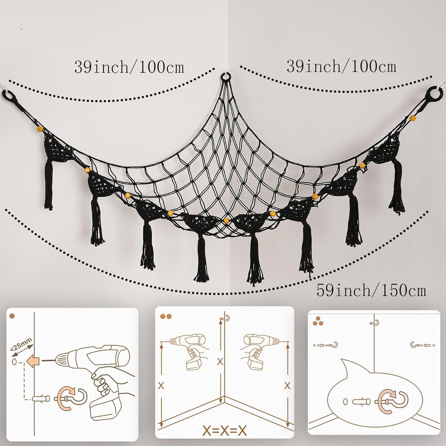 - DISPLAY YOUR CUTE PLUSHIES: Compared to other toy organizers net, our bohemian-style corner hanging hammock that has adorable edges decorated with tassel and half-circle macrame.for stuffed animal stroage is a fun, beautiful, and functional idea as a plush toy holder solution for crowded kids' rooms.The net features an elegant pattern with soft cotton cord, brightening up a corner of daughter bedroom or baby girl nursery.