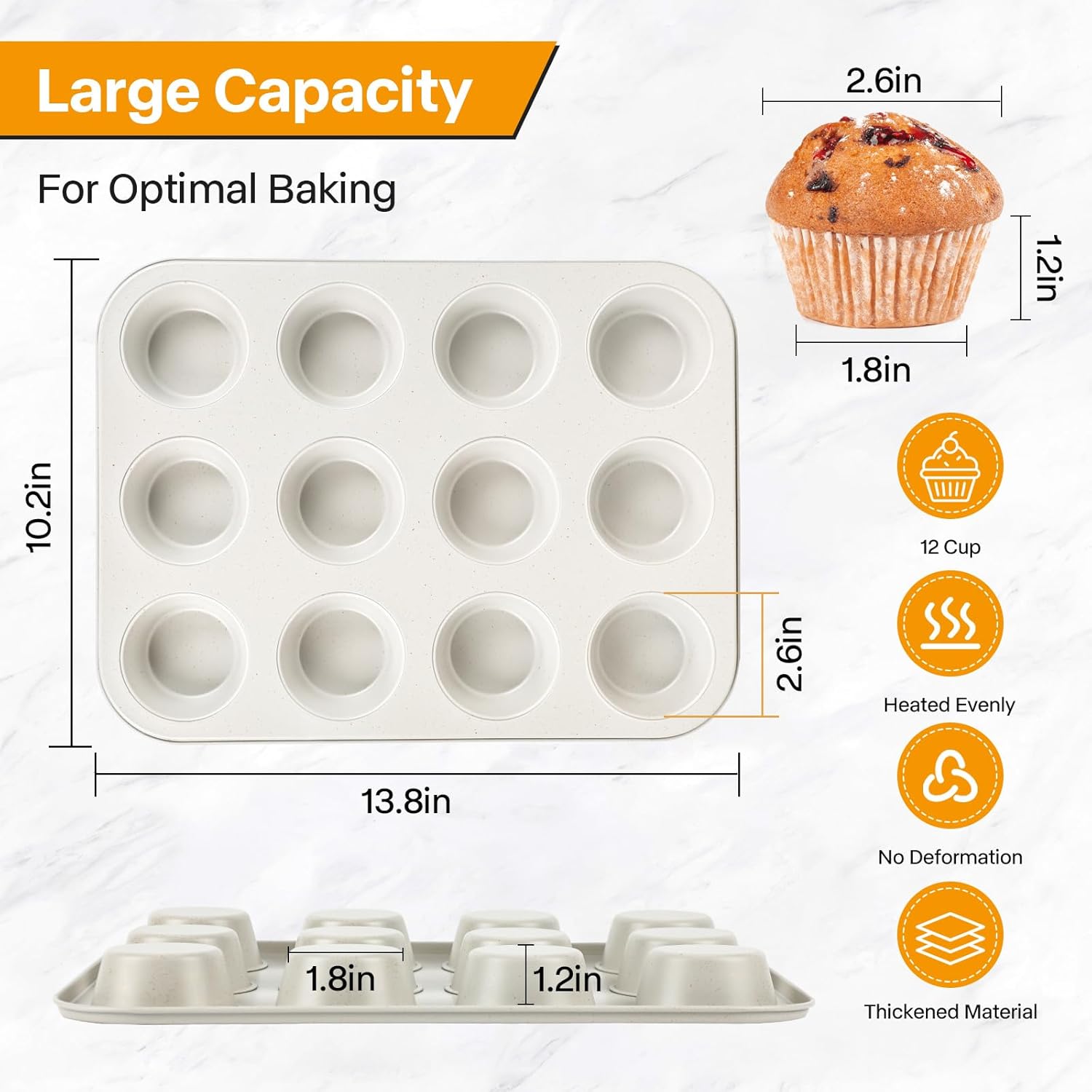 - Convenient Size for Cupcake: Come with 2-pack muffin pan, each pan features 12 cups, allowing you to bake a dozen muffins or cupcakes at once.