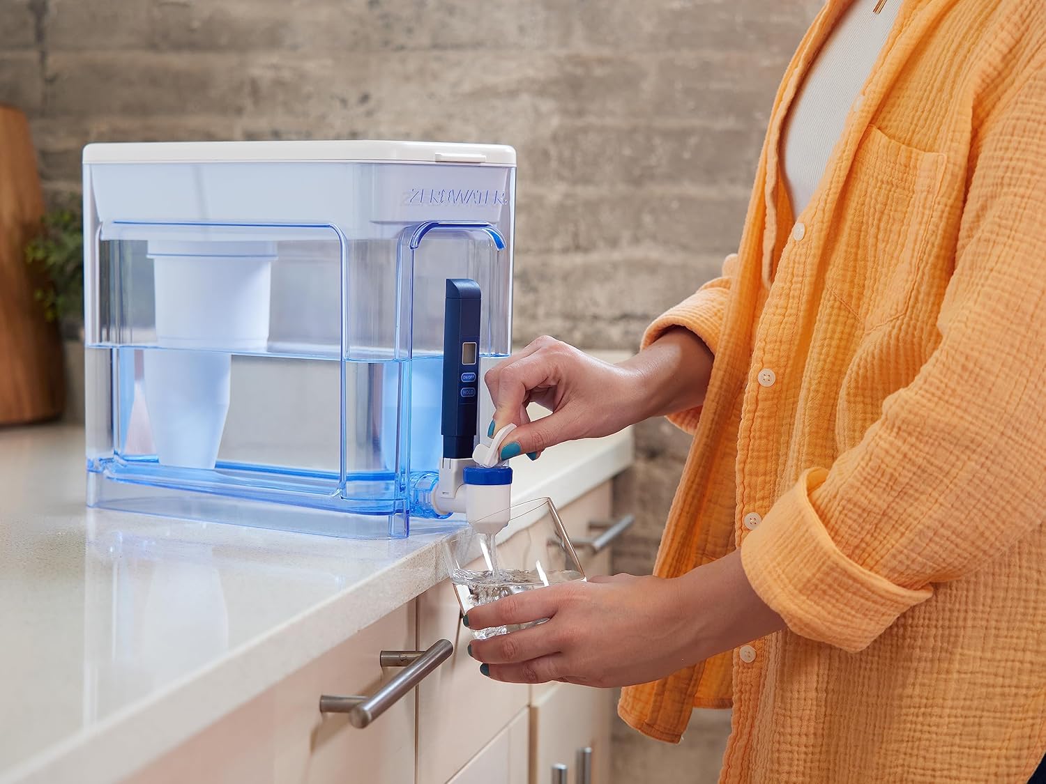 - Including: 32-cup Ready-Read Filter Water Dispenser, 1 ZeroWater 5-Stage Filter with Ion Exchange Technology and a Free TDS Meter.