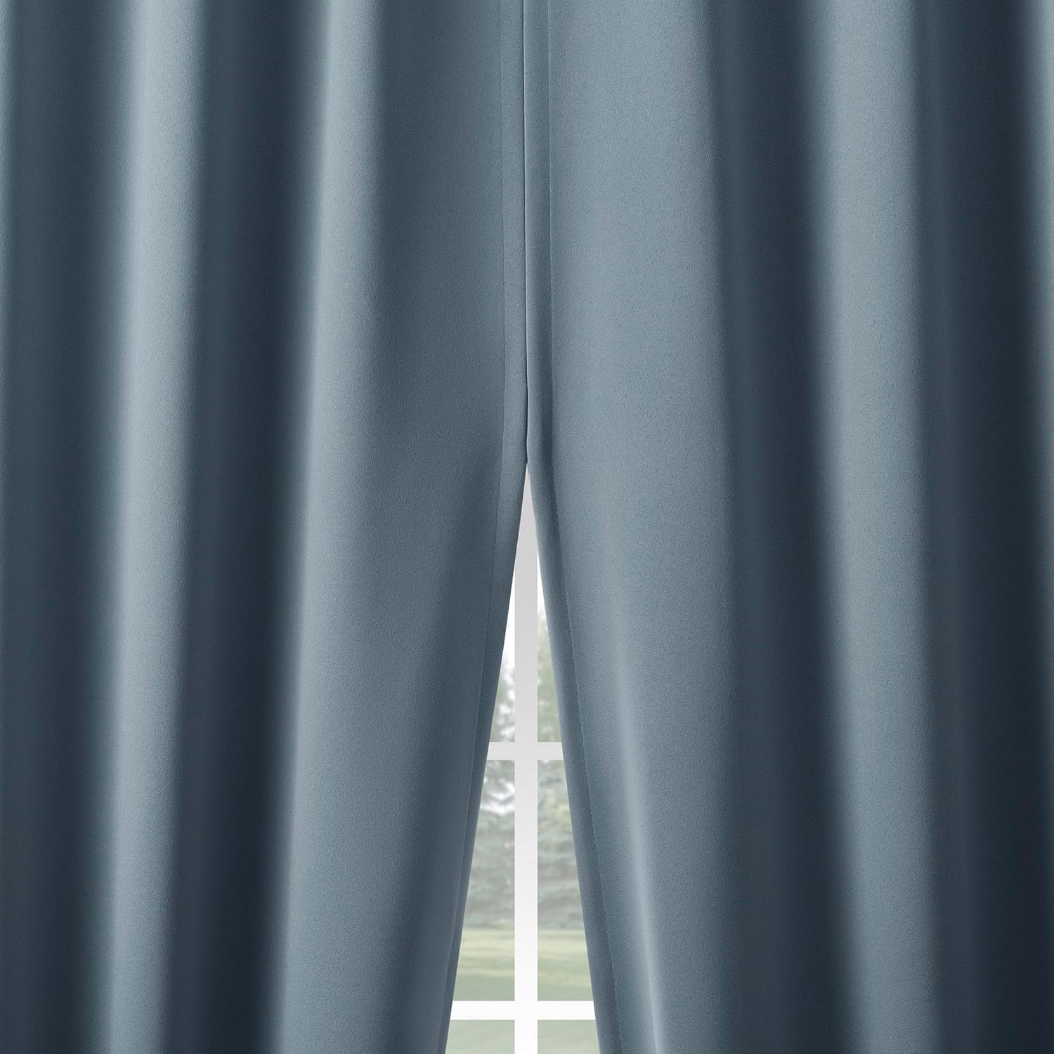 Sun Zero Belize 2-Pack Magnetic Closure Pleated Look Theater Grade 100% Blackout Back Tab Curtain Panel Pair, 52" x 96", Denim Blue