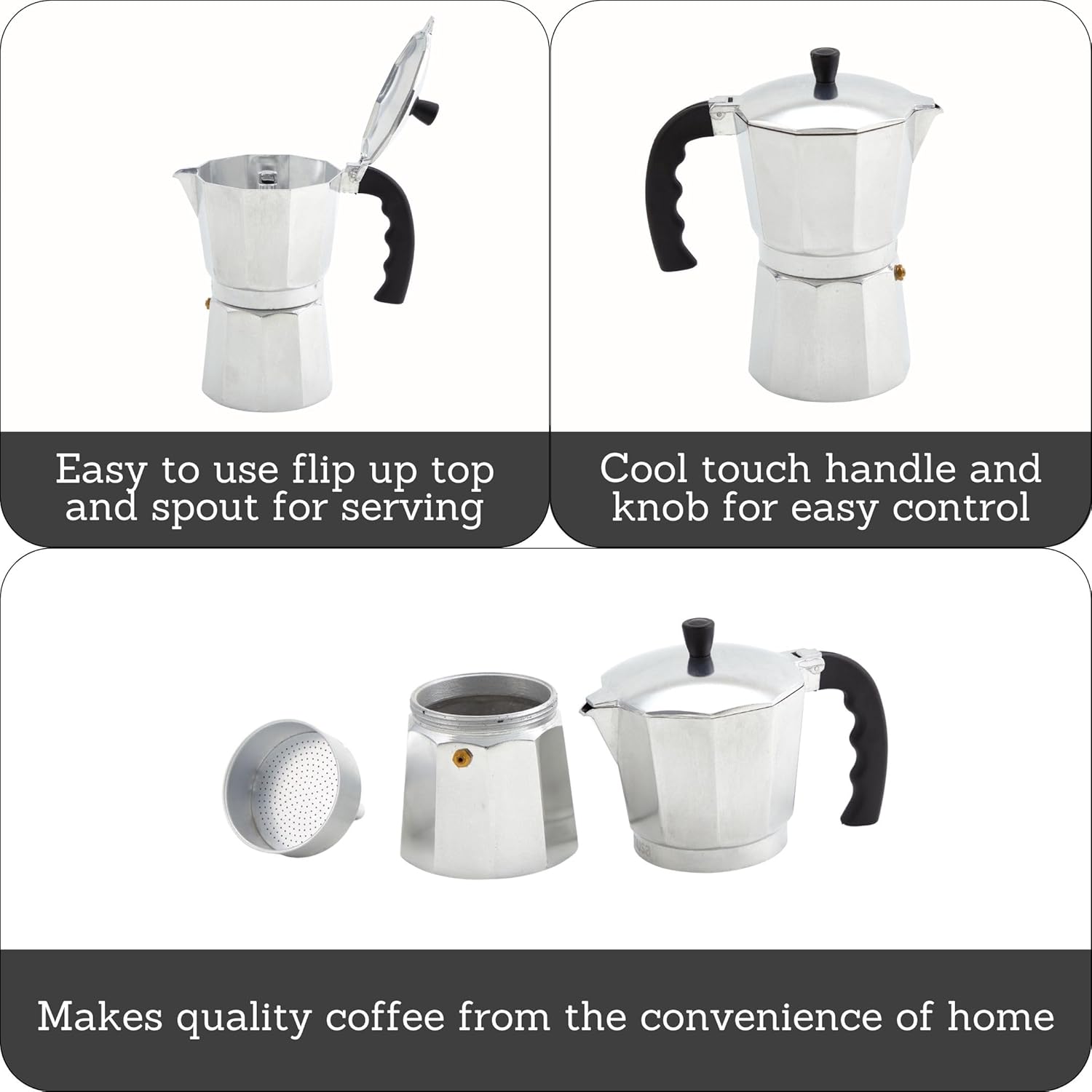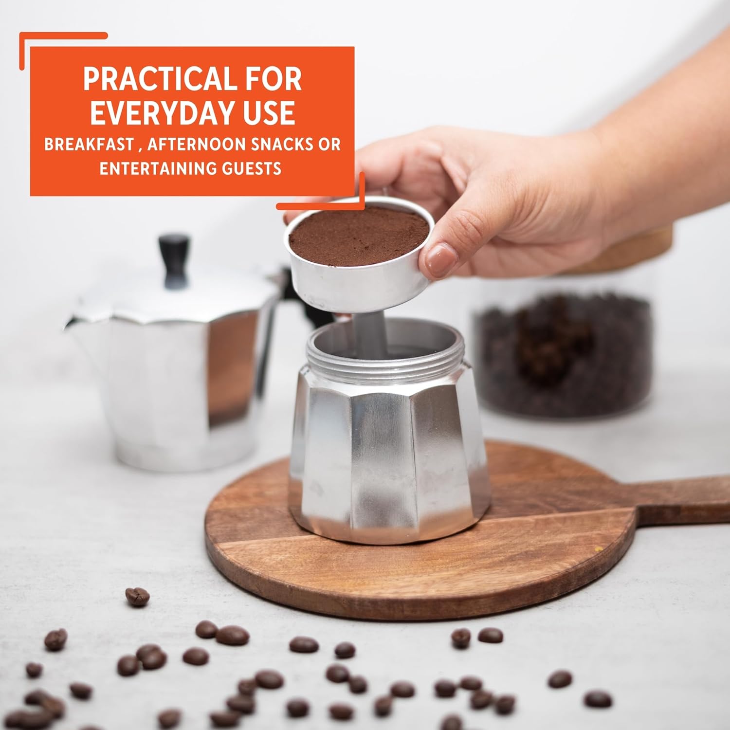 - DURABLE AND STYLISH: This coffee maker stovetop is crafted from cast aluminum, this coffee maker boasts durability and reliable performance, and Its natural polished exterior enhances your kitchen decor with a touch of sophistication