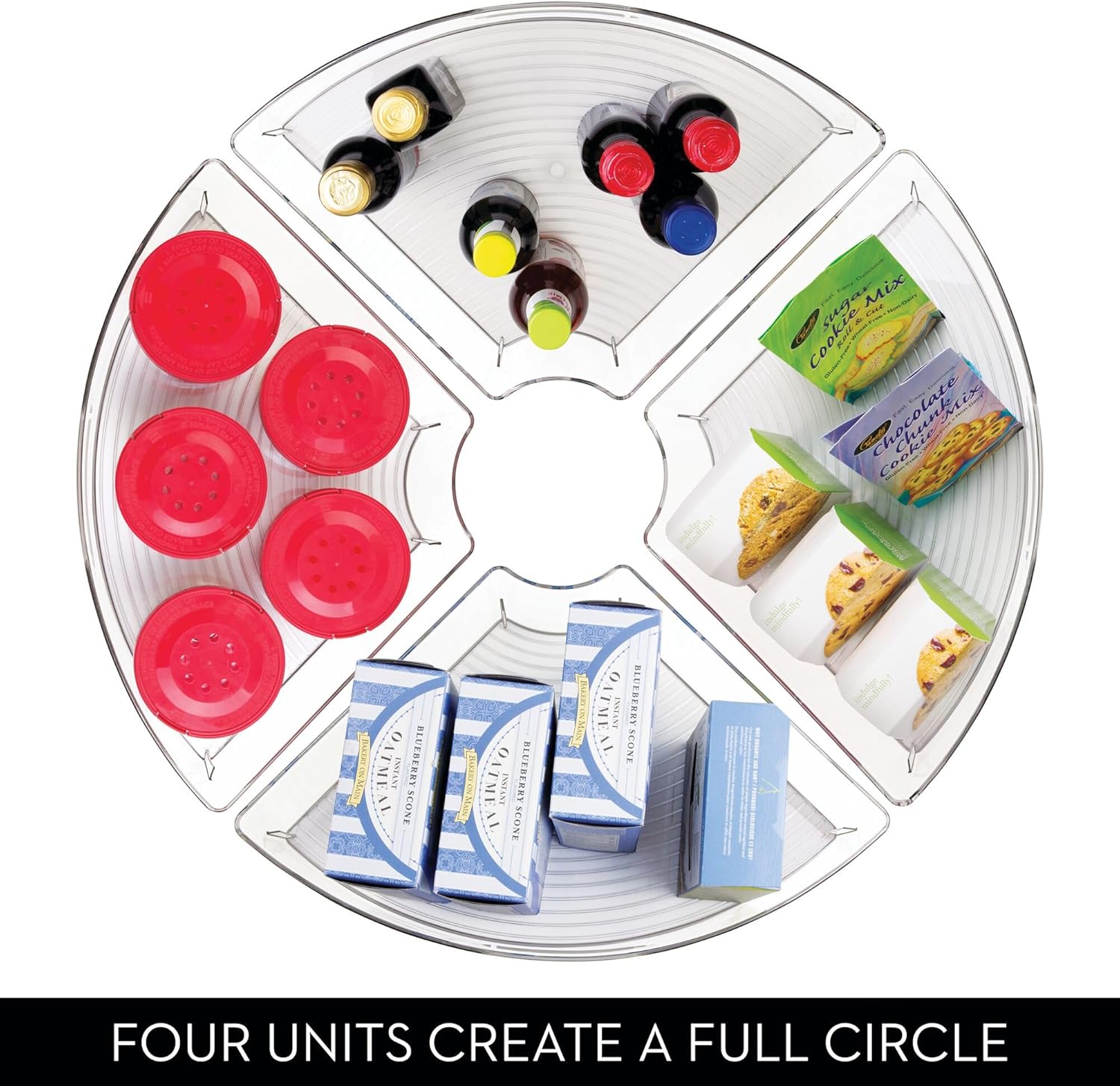 - VERSATILE DESIGN – This lazy susan cabinet organizer can be used alone on a shelf, or with three other wedges to create a full circle around your lazy susan; it’s ideal for storing spices, ingredients in the pantry, or as a lazy susan for refrigerator